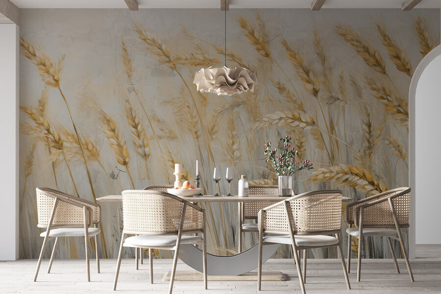 Transforme su espacio con un impresionante mural que captura un campo de trigo, meciéndose suavemente con la brisa. Esta pieza añade un toque de belleza natural, aportando un ambiente cálido y terrenal a cualquier habitación. Imagínese tomando su café de la mañana, sintiéndose como si estuviera de pie en un campo dorado sin fin, con el sol besando sus mejillas. Es el tipo de mural que hace que las paredes cobren vida, despertando sueños de picnics y tardes tranquilas. Perfecto para una acogedora sala de estar o un sereno dormitorio, este mural invita a la calma y la alegría, recordando a todos que la naturaleza está a sólo una mirada de distancia.
