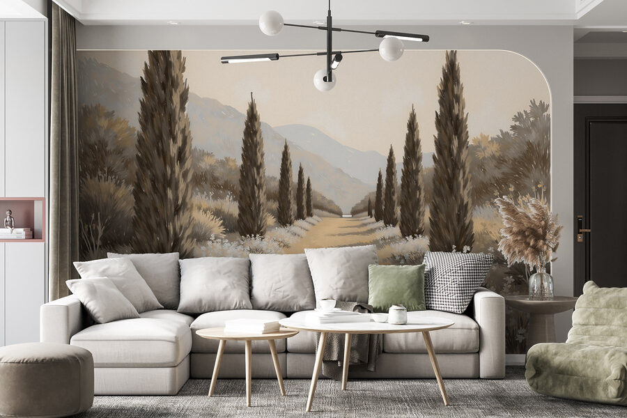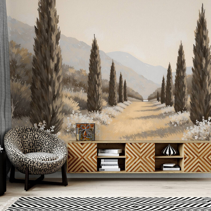 Transforme su espacio en un refugio de paz con este encantador mural de pared que presenta un sereno paisaje de altos árboles y delicadas flores. Es como entrar en una escena natural de ensueño desde el salón de tu casa. Imagínese tomando un té mientras contempla ese precioso camino bordeado de alegres flores: ¡tranquilidad instantánea! Los tonos terrosos crean un ambiente cálido que combina a la perfección con cualquier decoración. Perfecto para quienes desean un toque de naturaleza sin salir de casa. Imagina las conversaciones que este mural podría suscitar; incluso podría inspirar sueños de largos y perezosos paseos por un jardín iluminado por el sol. Una elección perfecta para aportar un poco de calma y carácter a cualquier habitación.