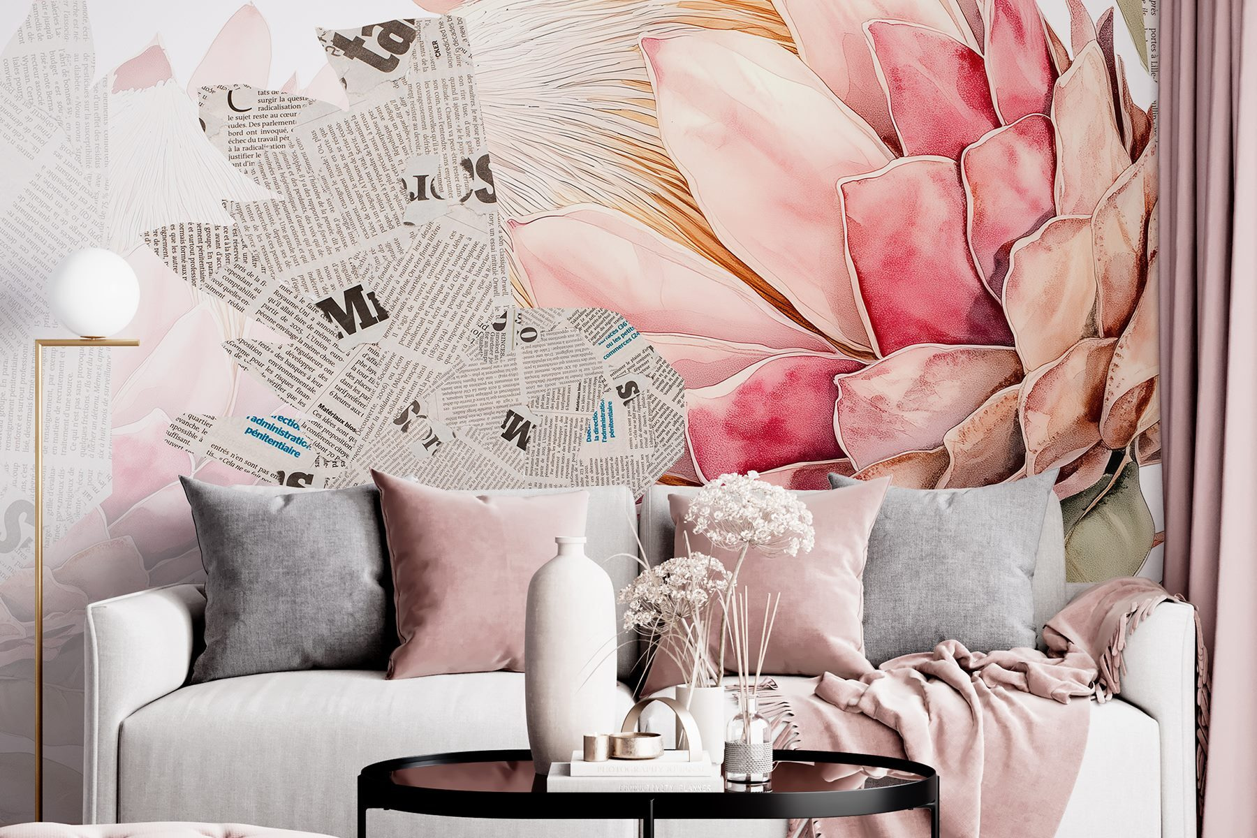 Transforme su espacio con este caprichoso mural de pared, una delicada danza de flores vibrantes y recortes de periódico. Imagínese entrar en una habitación donde la naturaleza y la vida urbana chocan: cada pétalo rebosa color mientras el papel de periódico susurra suavemente historias del mundo. Es como tener un jardín que nunca se marchita, ¡justo en la pared! Perfecto para un rincón de lectura acogedor o un comedor animado, este mural aporta un toque de alegría. Invita a la curiosidad, provocando conversaciones mientras los invitados se maravillan de su encanto único. ¿Quién diría que la decoración podría ser como un cálido abrazo? Sumérjase en esta mezcla de belleza y creatividad y deje que sus paredes cuenten una historia.