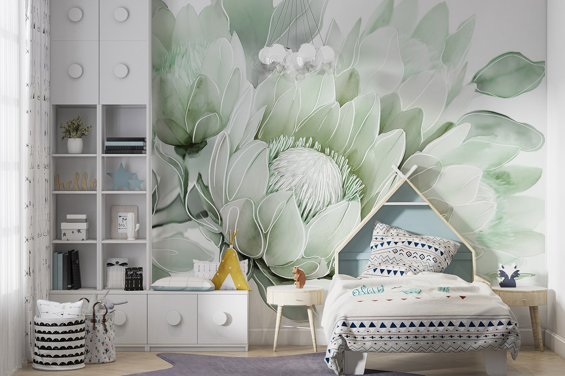 Transforma cualquier habitación en una escapada serena con el mural “Flores delicadas en suaves tonos pastel”. Imagínese despertarse con una suave floración de colores relajantes, trayendo ese ambiente de jardín de ensueño directamente a sus paredes. Es como un soplo de aire fresco, ¡sin alergias, te lo prometo! Ya sea en la sala de estar o en un acogedor rincón de lectura, este mural se balancea graciosamente con suaves pétalos, invitando a la calidez y la tranquilidad. Imagínate tomando el té mientras admiras la sutil belleza que te envuelve. Esto no es sólo decoración; es una experiencia, un recordatorio diario de que el arte de la naturaleza está a sólo una mirada de distancia. Perfecto para quienes aprecian una pizca de elegancia mezclada con un susurro de capricho.