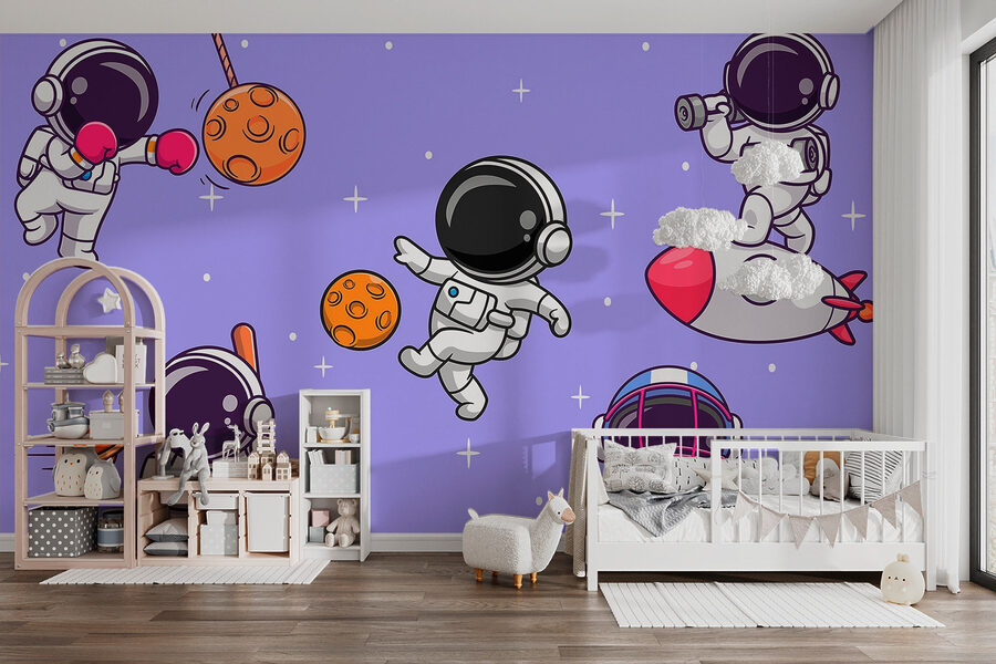 Imagínese que entra en una habitación donde los astronautas celebran una fiesta cósmica: suena divertido, ¿verdad? Este mural capta ese espíritu lúdico con astronautas de dibujos animados rebotando en el espacio, haciendo de todo, desde boxear con rocas lunares hasta hacer zoom en cohetes. Es como una vibrante historia que se desarrolla en tu pared, perfecta para los niños o los jóvenes de corazón. Imagínate esos momentos serios de la vida cotidiana alegrándose al echar un vistazo a estos extravagantes exploradores del espacio, que te recuerdan que hay que abrazar la alegría y la aventura. ¿Quién no querría un trozo del universo salpicado de felicidad? Transforma un espacio sencillo en una escapada imaginativa en la que los sueños echen a volar.
