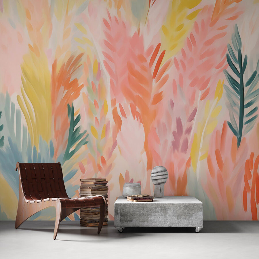 Transforme una pared aburrida en una vibrante jungla de color con este encantador mural de hojas de colores sobre un suave fondo blanco. Imagina que entras en un jardín soleado cada vez que entras en la habitación. Los alegres tonos rosas, verdes y amarillos levantan el ánimo al instante, como un buen humor salpicado con un poco de magia. Perfecto para cualquier espacio, este diseño despierta la alegría y la imaginación; quién sabe, ¡incluso podría inspirar una caprichosa fiesta del té! Lleva el aire libre al interior y deja que la belleza de la naturaleza insufle vida a tu hogar. Al fin y al cabo, la vida es demasiado corta para tener paredes aburridas.