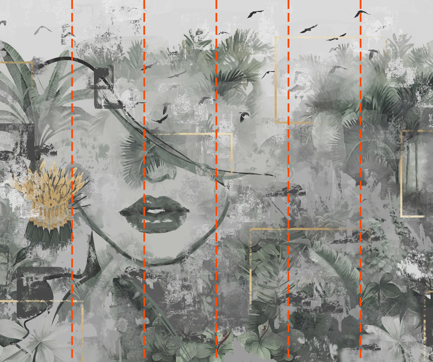 Fotomurales Pintura de la cara de una mujer’y plantas