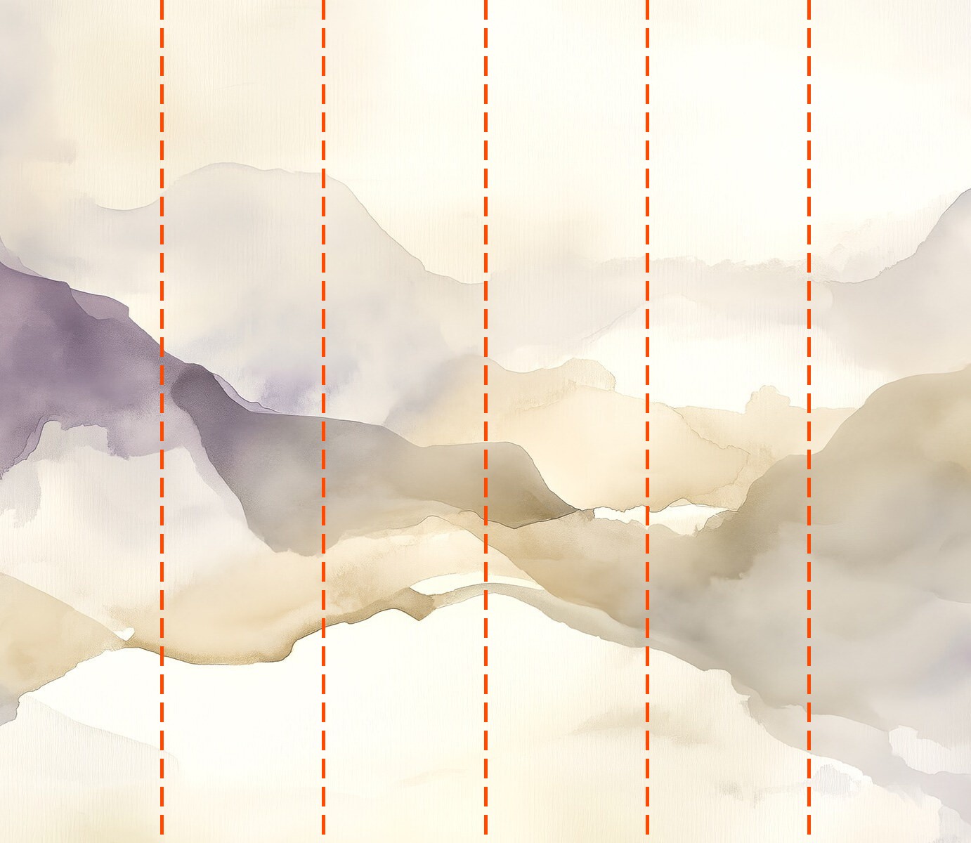 Tu papel pintado se preparará según las dimensiones que nos hayas facilitado durante el proceso de pedido. El lienzo se dividirá en cómodas secciones de hasta 50 cm de ancho cada una.