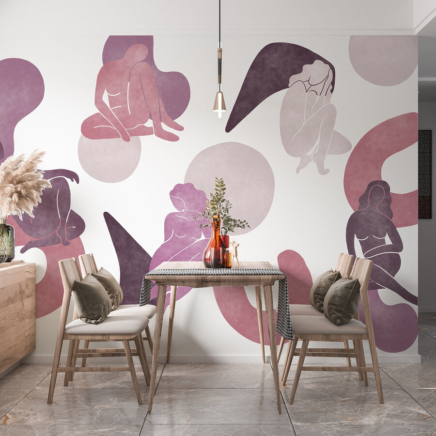Transforme una pared lisa en un animado lugar de reunión con este impresionante mural que muestra a un grupo de mujeres sentadas y posando. Es como invitar a un grupo de musas artísticas a tu casa. Los tonos suaves y las formas fluidas crean un ambiente relajado, haciendo que cualquier espacio resulte cálido y acogedor. Imagina a tus amigos tomando el té o compartiendo risas bajo este encantador telón de fondo: es perfecto para una charla acogedora o un momento tranquilo con un libro. Además, el diseño es refrescante y moderno y cuenta una historia de amistad y creatividad. Tu pared prácticamente pedirá cumplidos.