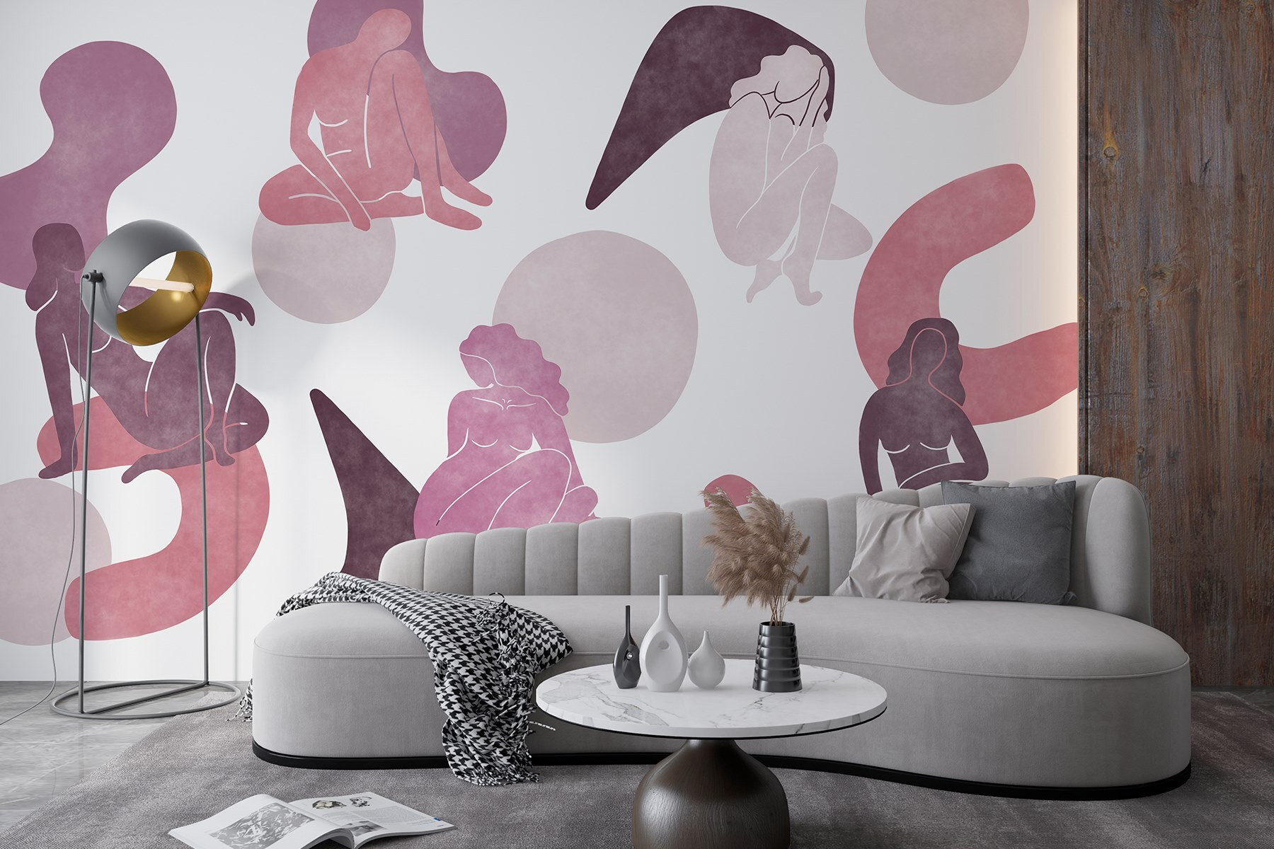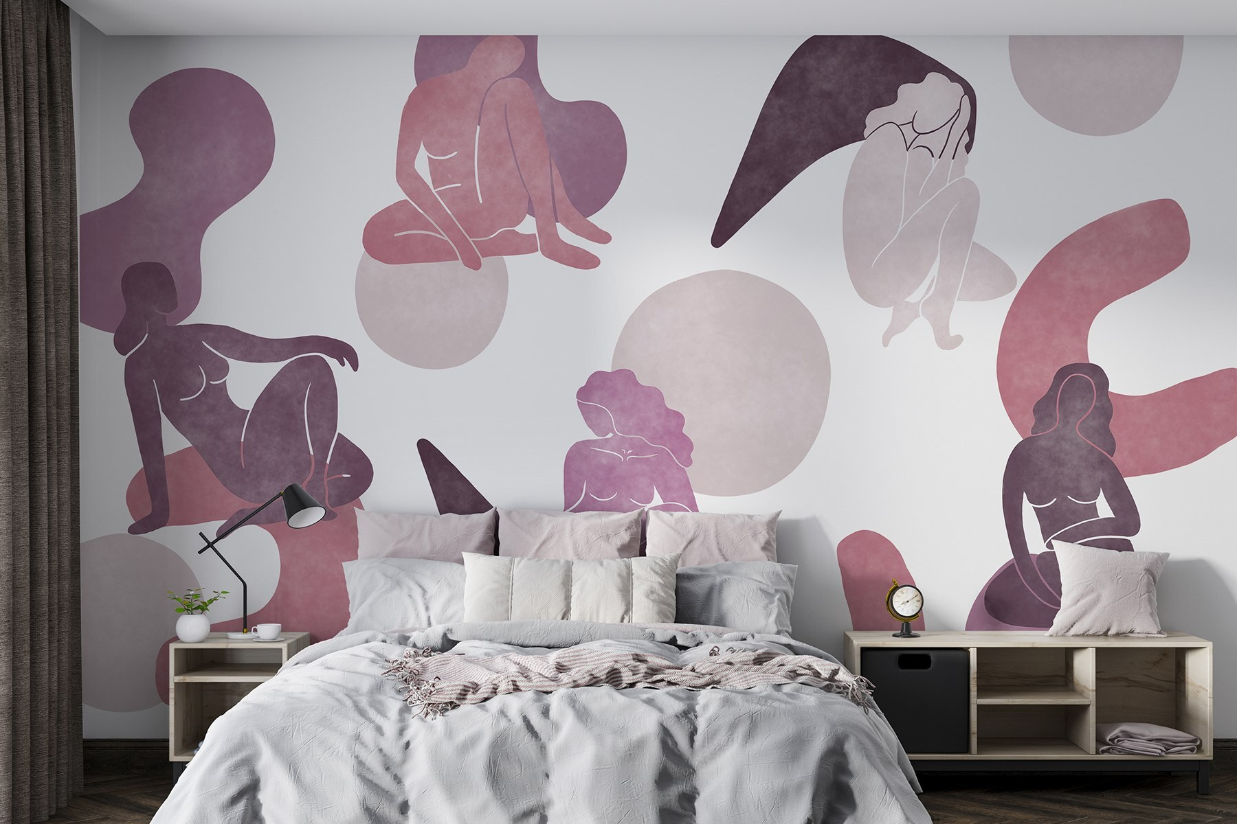 Transforme una pared lisa en un animado lugar de reunión con este impresionante mural que muestra a un grupo de mujeres sentadas y posando. Es como invitar a un grupo de musas artísticas a tu casa. Los tonos suaves y las formas fluidas crean un ambiente relajado, haciendo que cualquier espacio resulte cálido y acogedor. Imagina a tus amigos tomando el té o compartiendo risas bajo este encantador telón de fondo: es perfecto para una charla acogedora o un momento tranquilo con un libro. Además, el diseño es refrescante y moderno y cuenta una historia de amistad y creatividad. Tu pared prácticamente pedirá cumplidos.