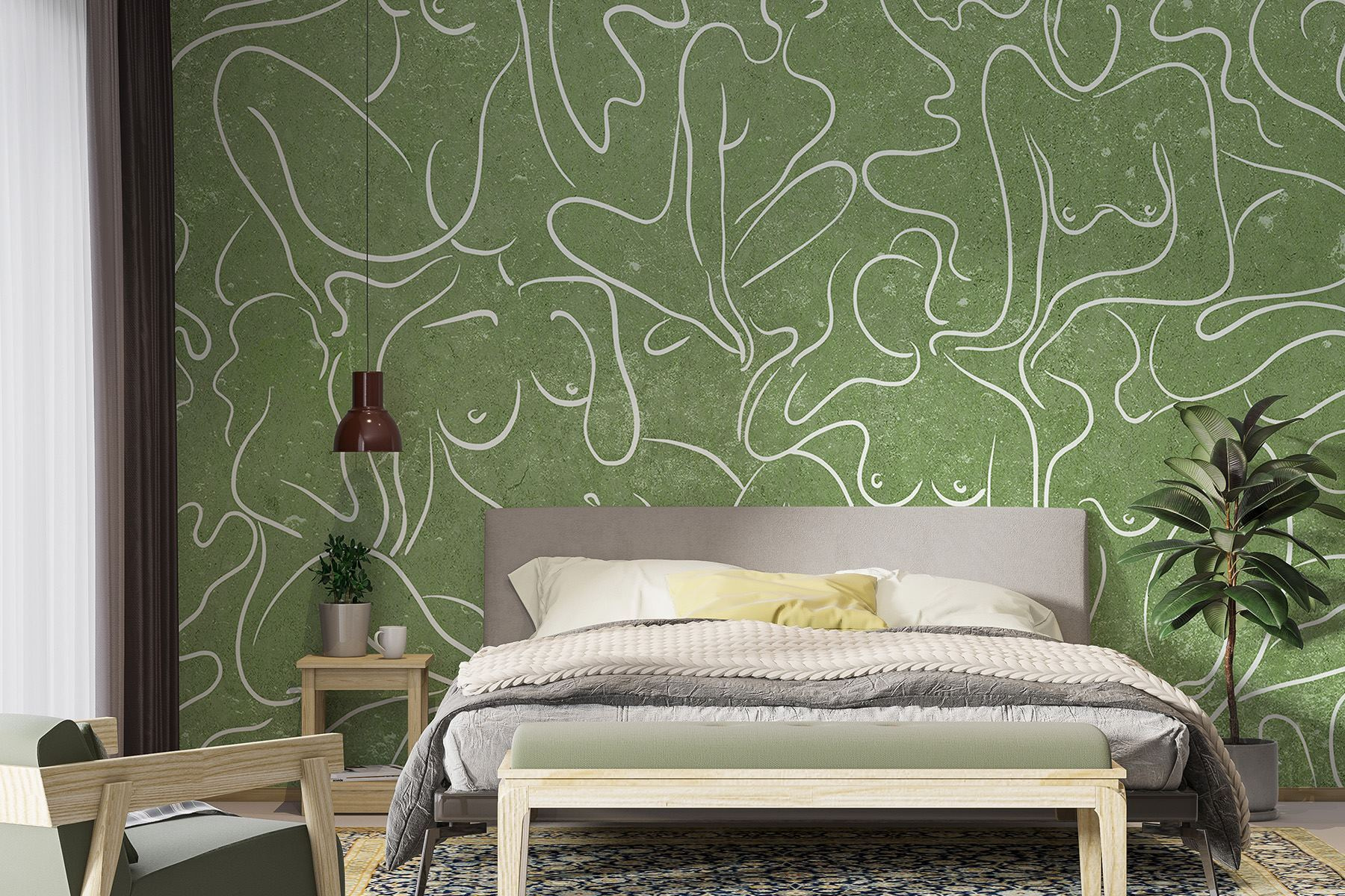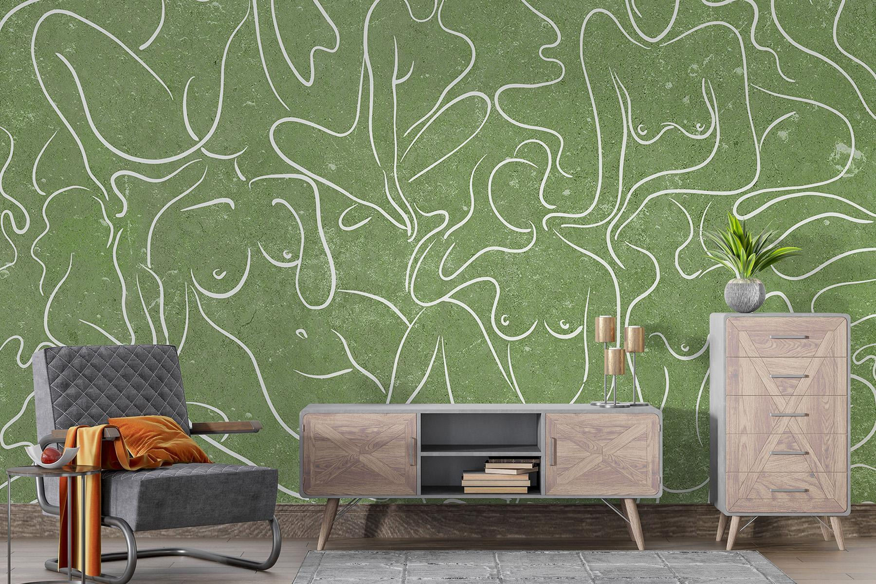 Presentamos un mural de pared que es como un cálido abrazo para cualquier espacio: imagínese un rincón acogedor transformado por gráciles contornos de mujer que se arremolinan suavemente sobre un suave fondo verde. Esto no es sólo decoración, ¡sino que mejora el estado de ánimo! Imagínese tomando el té, sumido en sus pensamientos, mientras estas figuras fluidas inspiran la creatividad y la conexión. Sus amigos hablarán de la belleza y la sencillez de todo ello, mientras usted disfruta en secreto de los cumplidos. Perfecto para un salón o un dormitorio sereno, te atraerá con su suave encanto y su ambiente artístico. ¿Quién iba a decir que el arte mural podía ser tan acogedor?
