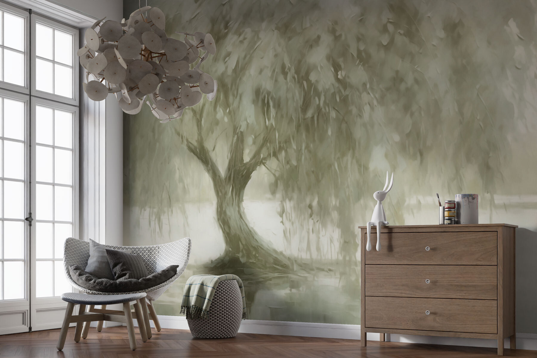 Transforme cualquier habitación con este encantador mural, “Árbol en el agua”. Imagínatelo: tonos suaves y serenos que envuelven tu espacio en un suave abrazo. Es como llevar un trozo de naturaleza al interior sin tener que preocuparse de regar nada. El árbol parece mecerse con gracia, proyectando reflejos que danzan por las paredes, perfectos para provocar ensoñaciones o inspirar acogedoras charlas con los amigos. Imagínese acurrucado con un libro, perdido en sus pensamientos mientras se impregna de las tranquilas vibraciones. Este mural no sólo decora, sino que susurra tranquilidad, haciendo que cada momento sea un poco más especial. Una auténtica joya para los amantes de la naturaleza.