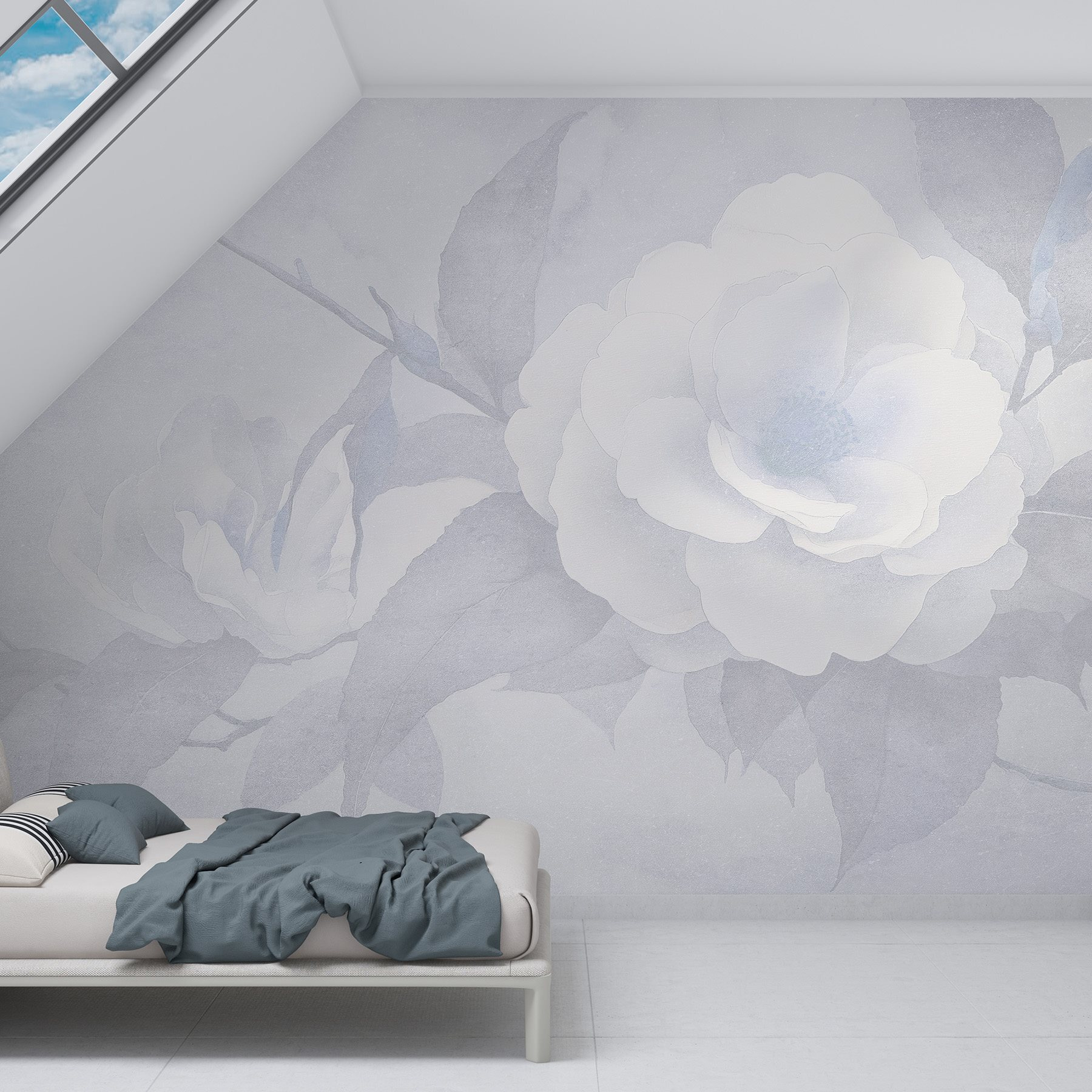 Transformar un espacio puede ser tan sencillo como añadir este mural de pared con delicadas flores y hojas blancas. Imagínese despertarse cada día con esta serena belleza. Es como invitar a la naturaleza al interior sin preocuparse de regar las plantas o de los molestos insectos. La suave paleta crea un ambiente relajante, perfecto para un acogedor rincón de lectura o un tranquilo dormitorio. Los amigos se pasarán por aquí sólo para admirarlo. Además, suscita conversaciones del tipo: “¿Es arte o naturaleza?”, y ¿a quién no le gusta un poco de misterio en su decoración?