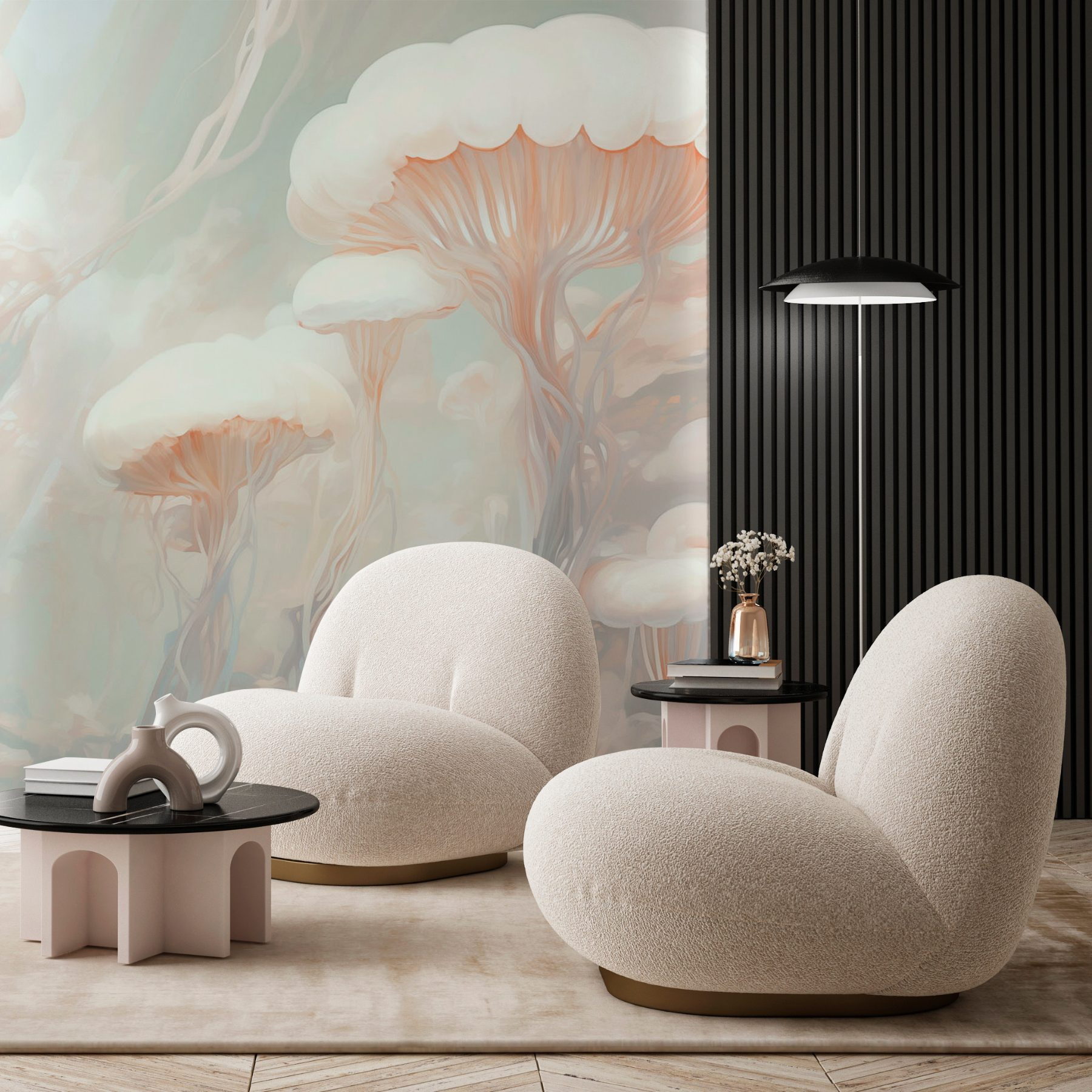 Transforme una habitación con el encantador encanto del mural “Grupo de setas blancas”. Imagínatelo: un paisaje de ensueño de hongos caprichosos, balanceándose con gracia como una fiesta de baile para la naturaleza. Los colores suaves se mezclan como una acuarela, aportando un ambiente sereno que susurra relajación. Ideal para un rincón acogedor o incluso una cocina extravagante, este mural puede hacer que cualquiera se sienta como si hubiera entrado en un cuento de hadas. Imagínese tomando el té aquí, rodeado de este caprichoso encanto, dejando que las preocupaciones cotidianas se alejen como una suave brisa. Es más que una simple decoración; es una experiencia que espera ser vivida.