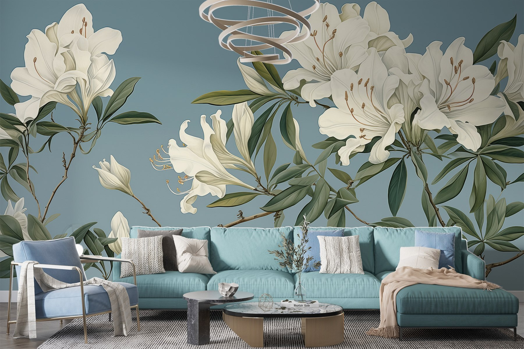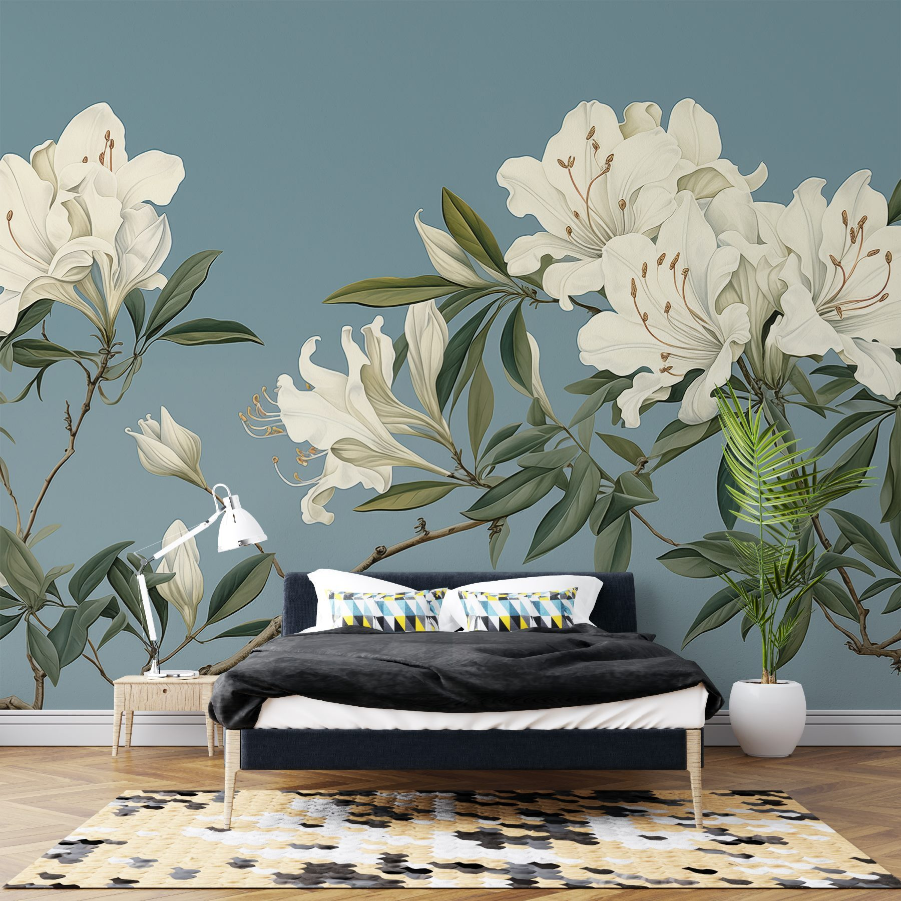 Transforma tu espacio en un oasis de serenidad con este mural de flores blancas floreciendo con gracia sobre delicadas ramas. Es como llevar un trozo de naturaleza a tu casa, sin polen ni insectos. Imagínatelo: sentado en tu sillón favorito, con una taza de té caliente en la mano, y dejando que los colores tranquilizantes te rodeen. Los tonos suaves y acogedores crean una atmósfera que susurra “quédate un rato”. Es perfecto para un dormitorio acogedor o un tranquilo rincón de lectura. Tus amigos te preguntarán dónde has encontrado una obra de arte tan impresionante, y tú simplemente sonreirás, sabiendo que tu espacio es ahora luminoso y hermoso. Deja que el encanto de las flores refresque tus habitaciones.