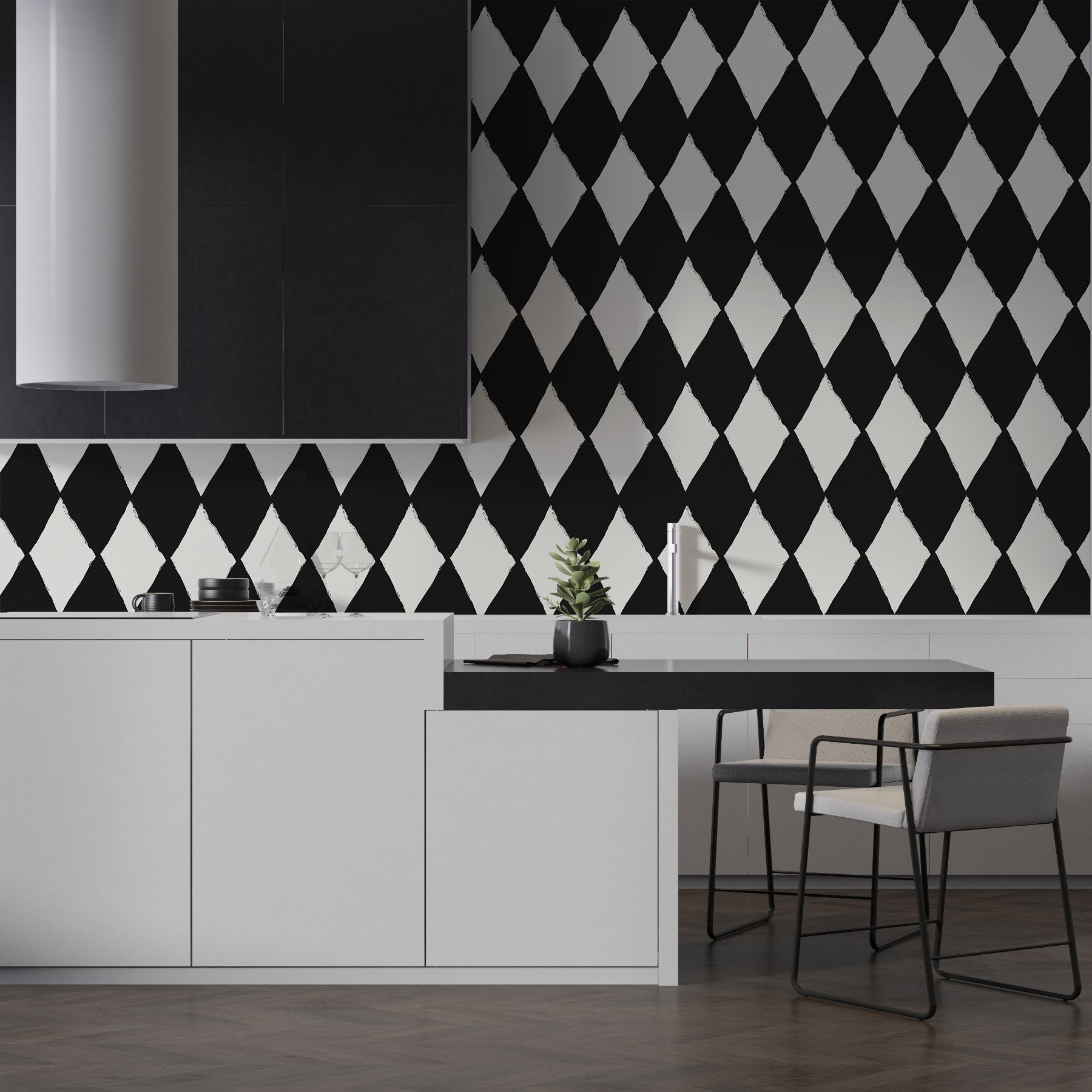 Transforma cualquier pared aburrida en una declaración de estilo con este mural de rombos en blanco y negro. Es como dar a su habitación un traje fresco, elevando al instante el ambiente. Imagínese entrar en su espacio y ser recibido por un diseño audaz y enérgico que simplemente le hace sonreír. El diseño geométrico añade un toque moderno sin ser demasiado exagerado. Es perfecto para una acogedora sala de estar o incluso para un juguetón dormitorio. ¿Quiere impresionar a sus invitados? Este mural tiene ese factor sorpresa. Una rápida charla sobre decoración se acaba de convertir en una divertida aventura. Prepárate para recibir cumplidos.