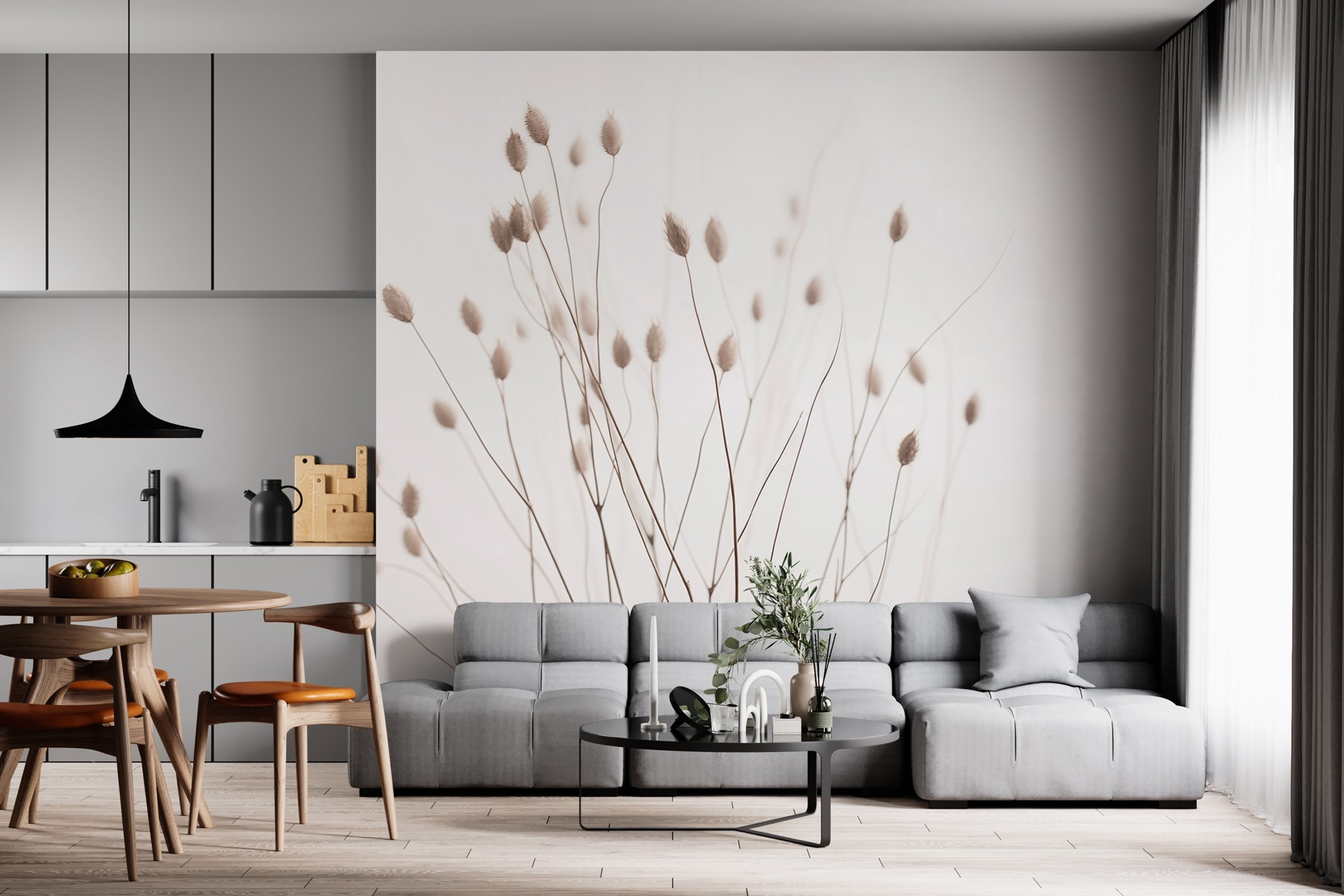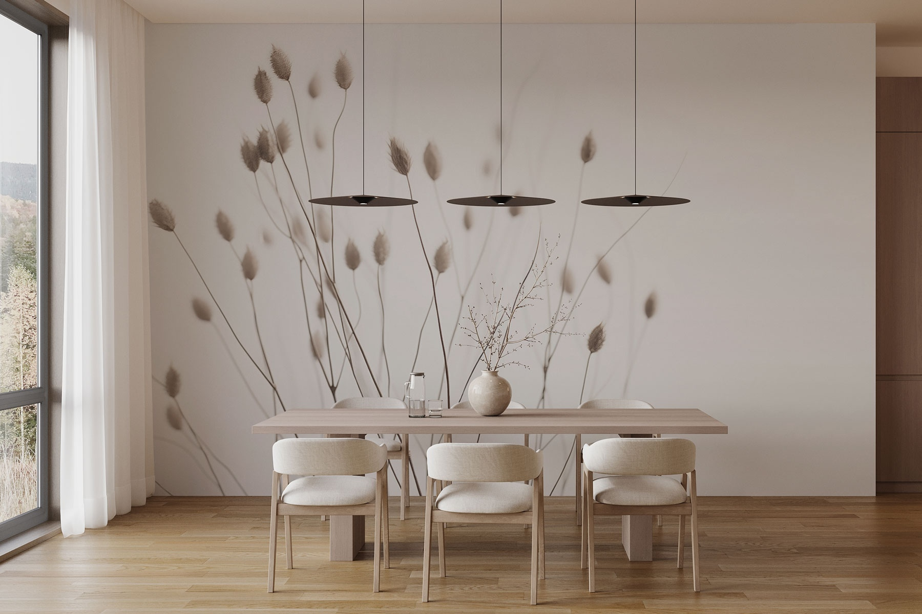 Transforme una pared lisa en una escapada relajante con este mural de delicados tallos bailando sobre un fondo suave. Imagina despertarte con este ambiente sereno cada mañana. Es como llevar un susurro de la naturaleza al interior, evocando prados soleados y suaves brisas. Imagina tardes acogedoras con un libro, los sutiles colores envolviéndote como un suave abrazo. No es sólo decoración; es una invitación a respirar hondo y relajarse. Además, combina a la perfección con varios estilos, lo que la convierte en una opción versátil para cualquier espacio. Piensa en todos los cumplidos de tus amigos, ¿quién no querría eso?