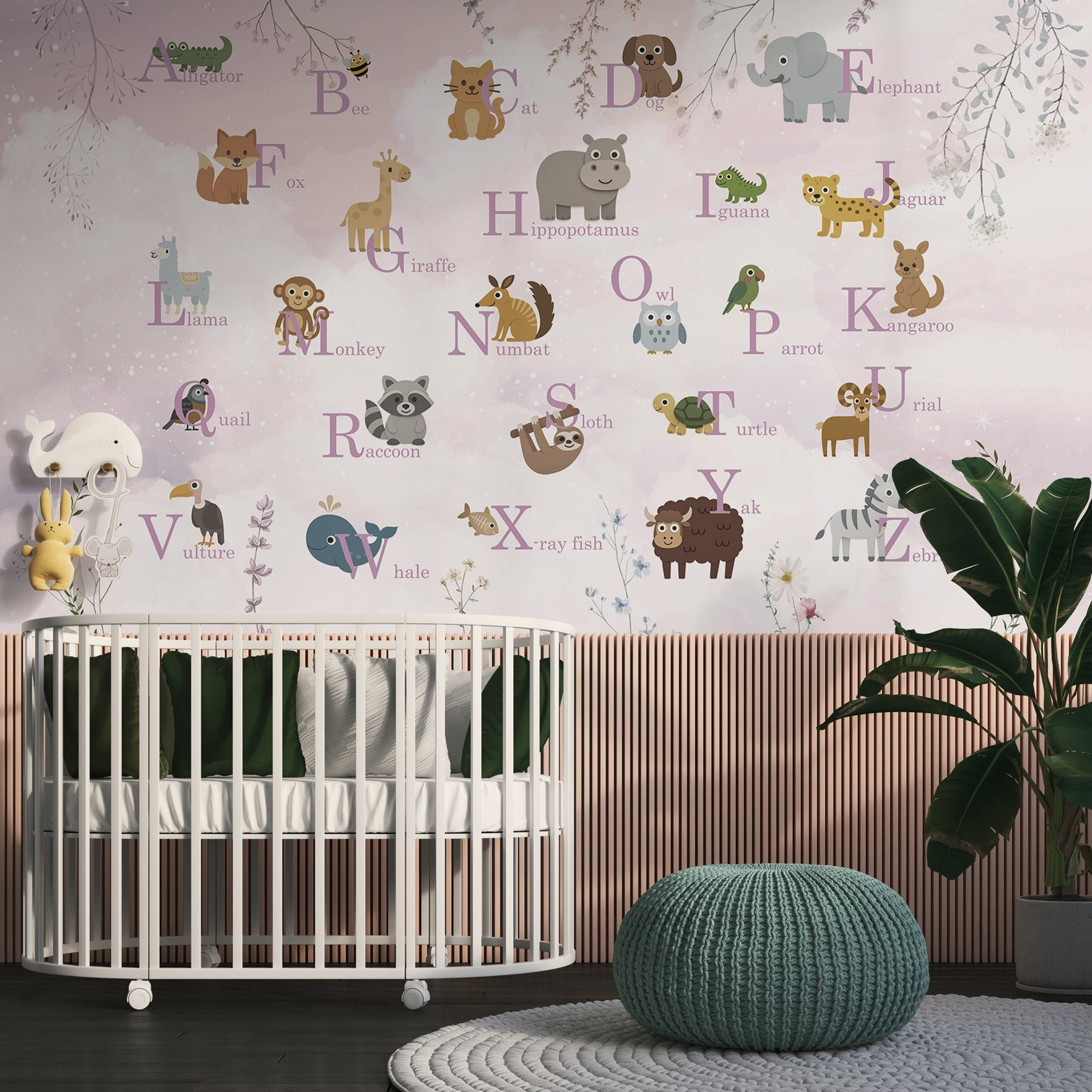 Adéntrate en un mundo de fantasía con este encantador mural de pared que presenta un desfile de encantadores animales y letras. Imagina a los niños riéndose mientras señalan juguetonamente a cada peludo amigo mientras aprenden el abecedario. El suave fondo en tonos pastel hace que sea muy fácil de colocar en cualquier habitación, ya sea una guardería, una sala de juegos o incluso un acogedor rincón de lectura. Es como un suave abrazo para tus paredes, que despierta la curiosidad y la alegría. Además, ¿a quién no le encantaría tener un perezoso o una llama vigilándole? Este mural añade el toque justo de diversión y calidez, perfecto para alimentar la imaginación de los más pequeños y mantener el espacio acogedor.