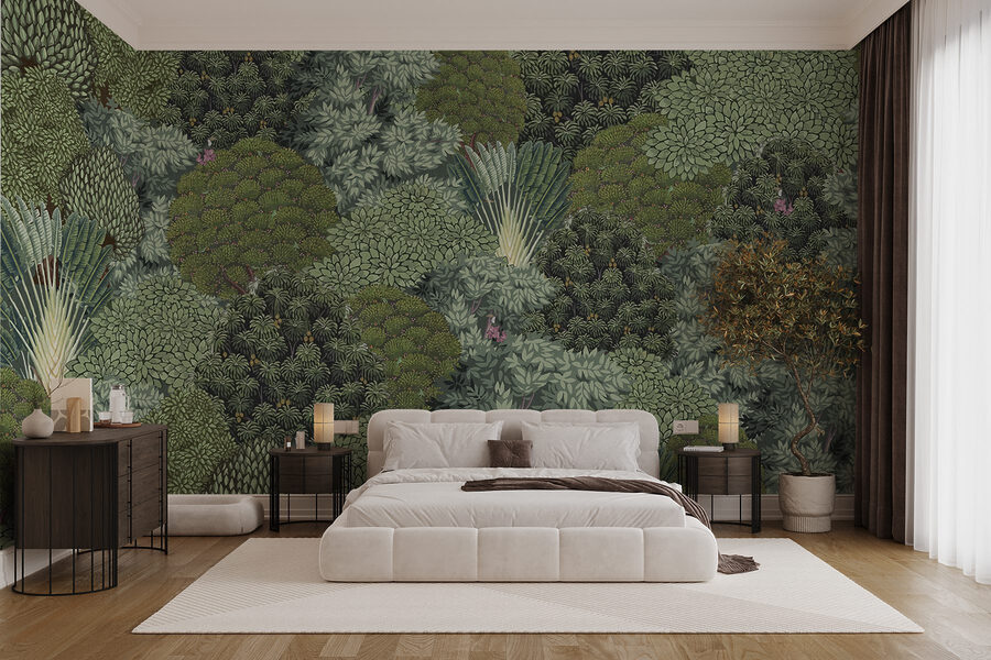¡Transforme su espacio con un soplo de naturaleza! Este mural de pared, repleto de un exuberante tapiz de árboles, crea un oasis justo en su casa. Imagínese recostado en su sillón favorito, con una taza de té en la mano, sintiéndose transportado a un bosque sereno. Cada capa de hojas te atrae, invitándote a susurros de aire fresco y aventura.