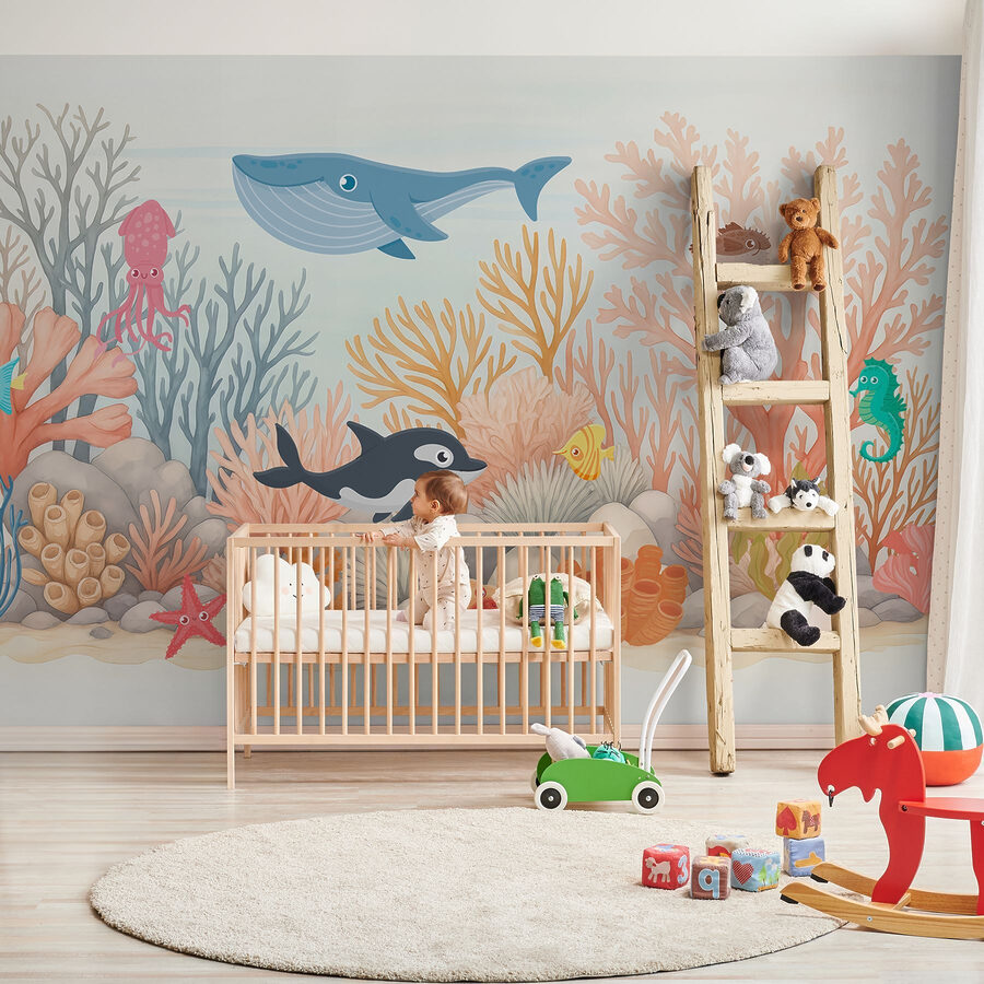 Sumérgete en un vibrante mundo submarino con este encantador mural de pared con peces juguetones y corales caprichosos. Imagina la habitación de un niño transformada en una animada escena oceánica, transportando a los más pequeños a una mágica playa cada día. Es como llevar un trozo de mar al interior, ¡sin arena en los pies! Los padres apreciarán cómo despierta la imaginación y la curiosidad, mientras que a los niños les encantará avistar coloridas criaturas marinas. Perfecta para añadir un toque de diversión a las habitaciones de los niños, es un alegre recordatorio de que todos los días pueden ser un poco como una aventura en la playa. ¡Sencillamente encantador!