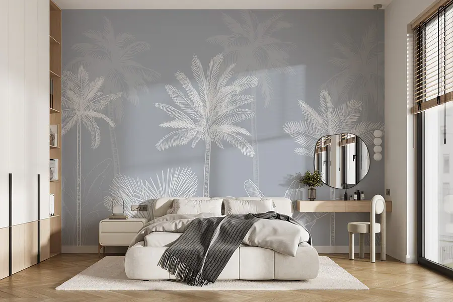 Transforme cualquier espacio con el encanto del mural de pared “Grupo de palmeras”. Imagínese entrar en una habitación e inmediatamente sentirse como si estuviera en unas vacaciones tropicales, sólo que sin el billete de avión y el protector solar. Estas elegantes palmeras suavemente esbozadas se alzan sobre un fondo relajante, invitando a un ambiente aireado que puede hacer que incluso las habitaciones más pequeñas se sientan abiertas y ventiladas.