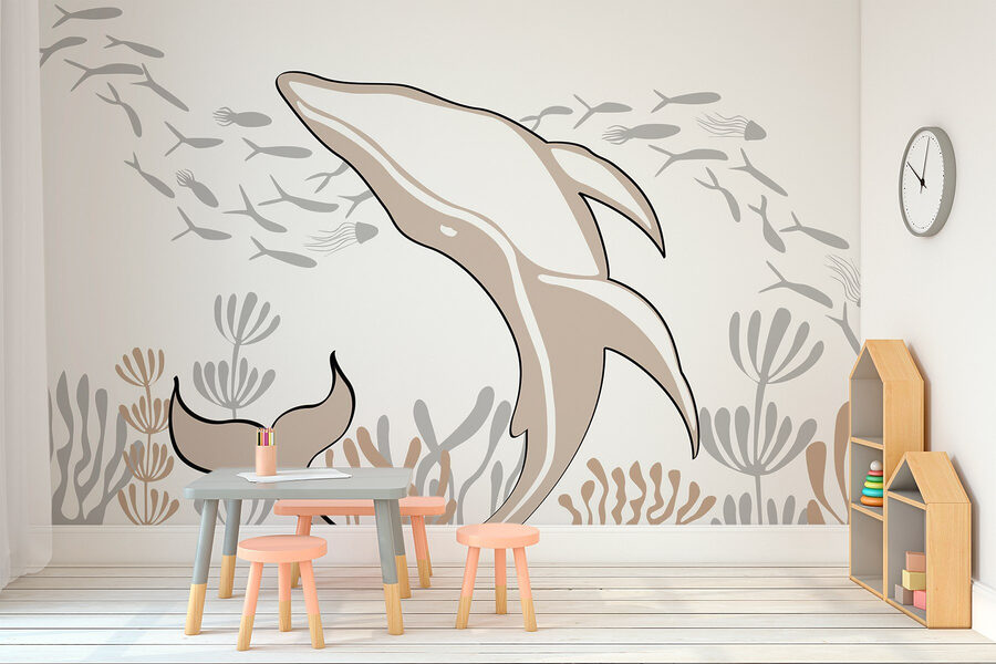 Transforme cualquier habitación en un sereno paraíso submarino con este encantador mural de pared con delfines nadando graciosamente por el océano. Imagínese entrar en un espacio donde estas juguetonas criaturas parecen saltar directamente, trayendo consigo una ola de calma. Los colores suaves y las líneas fluidas capturan una esencia tranquila, convirtiendo una pared ordinaria en un impresionante punto focal. Ya sea en un acogedor salón o en el dormitorio de un niño, este mural añade un toque de magia que desata la alegría e invita a soñar despierto. Es como tener un trozo del océano en casa, perfecto para cualquiera que ame la naturaleza y quiera crear un ambiente refrescante. Sumérgete en un mundo de fantasía y asombro.