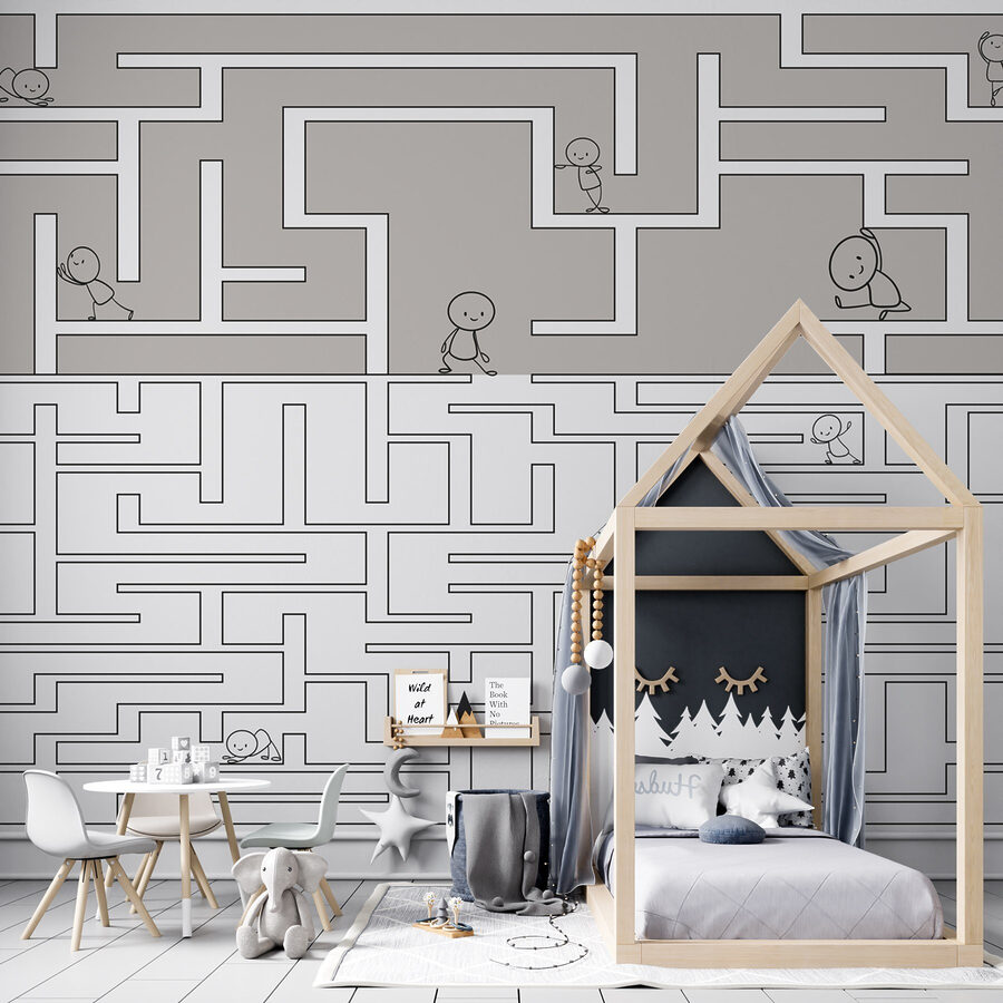 Transforma un espacio sencillo en una caprichosa aventura con este laberinto mural. Es como un minilaberinto en la pared, lleno de simpáticos personajes que deambulan por un laberinto. Imagina una habitación infantil rebosante de curiosidad, donde cada mirada despierta la imaginación.