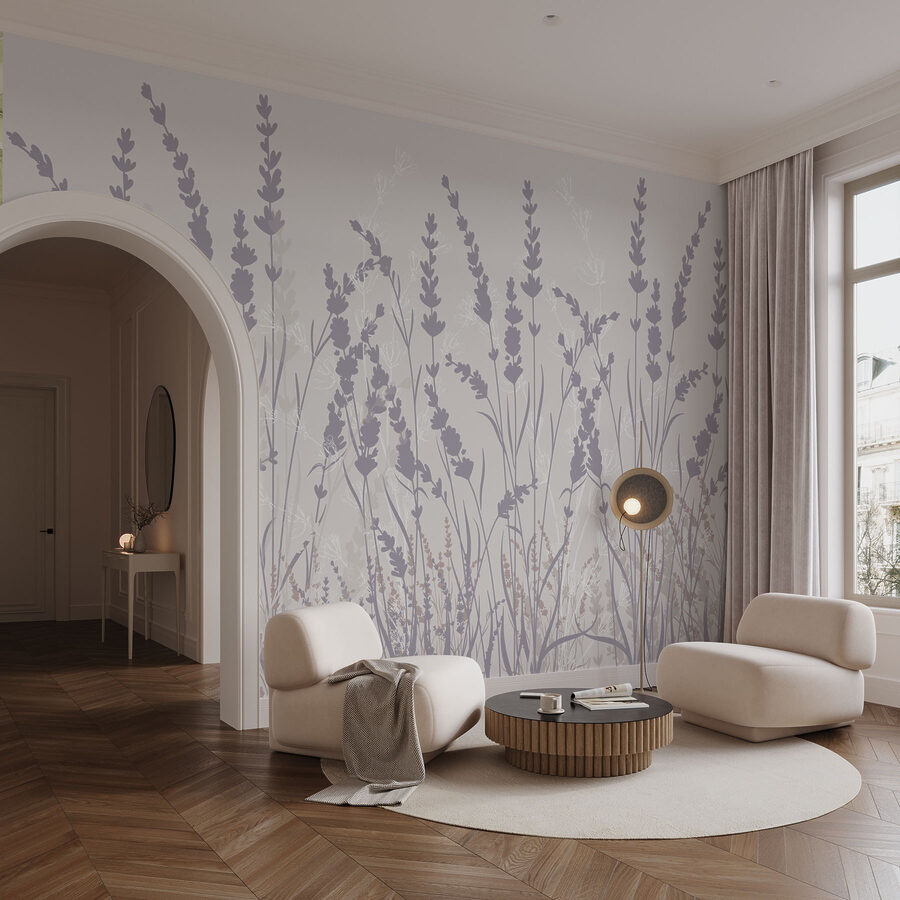 Transforme cualquier espacio con el encantador mural “Tonos suaves de la elegancia de la naturaleza”. Imagínese entrar en una habitación bañada en suaves tonos lavanda y verdes apagados, una escapada serena justo en su casa. Es como una suave brisa que lleva el aroma de las flores justo después de una lluvia, no demasiado abrumadora, sino perfectamente refrescante. Este mural no es sólo decoración de pared; es como llevar un apacible jardín al interior.