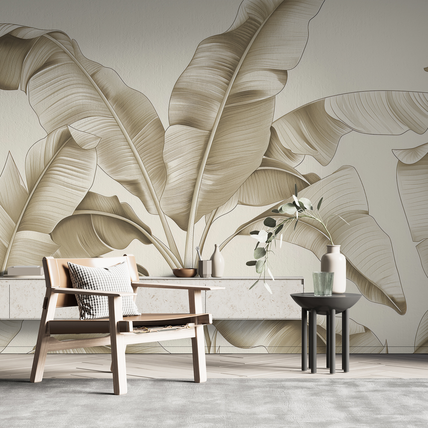 1 valoración en Fotomurales Elegantes hojas en sereno monocromo