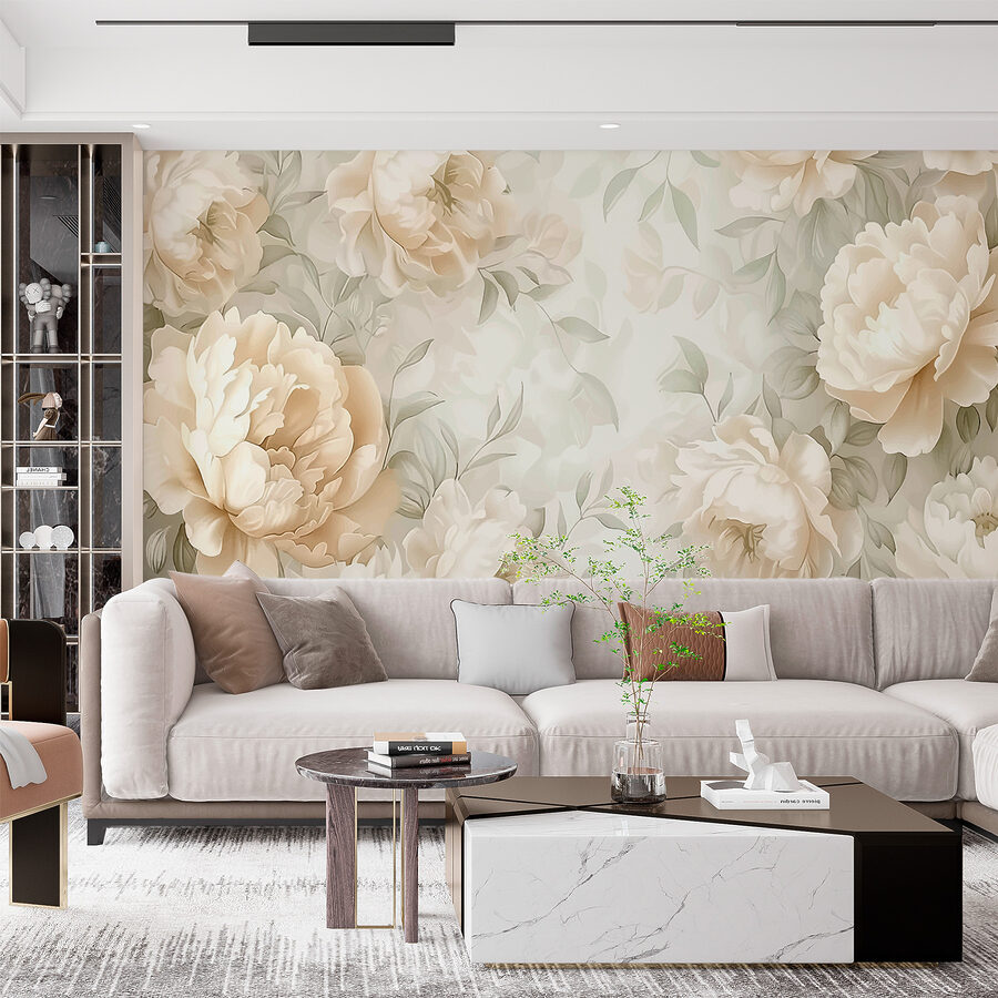 Transforme cualquier espacio en un jardín sereno con el mural “Flores cremosas en danza delicada”. Imagínese entrar en una habitación besada por flores suaves y románticas: es como un suave abrazo de la naturaleza. Estas exuberantes peonías, en tonos cremosos, bailan por la pared, invitando a soñar despierto y a charlar. Perfecto para un rincón de lectura o para esa pared que necesita un poco de vida, suscitará conversaciones y sentimientos cálidos. Combina sin esfuerzo con tu decoración, haciendo que todo parezca un poco más atento y acogedor. ¿Quién iba a decir que las flores podían crear tanta magia?