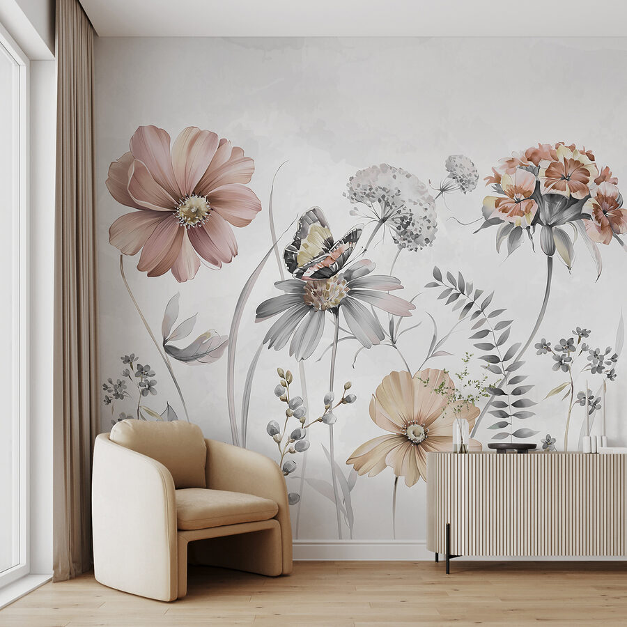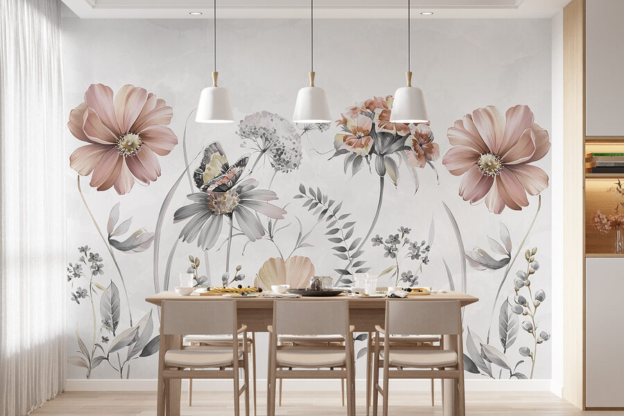 Perfecto para un dormitorio o un salón, es como tener un trozo permanente de primavera en la pared. Esas suaves mezclas de rosas y grises… súper calmantes. Ideal para convertir tu espacio en un refugio caprichoso sin pasarse. Además, los tonos apagados lo hacen tan versátil que no tienes que preocuparte de que desentone con tu decoración actual. Dale amor a tus paredes y deja que este mural hable por ti.