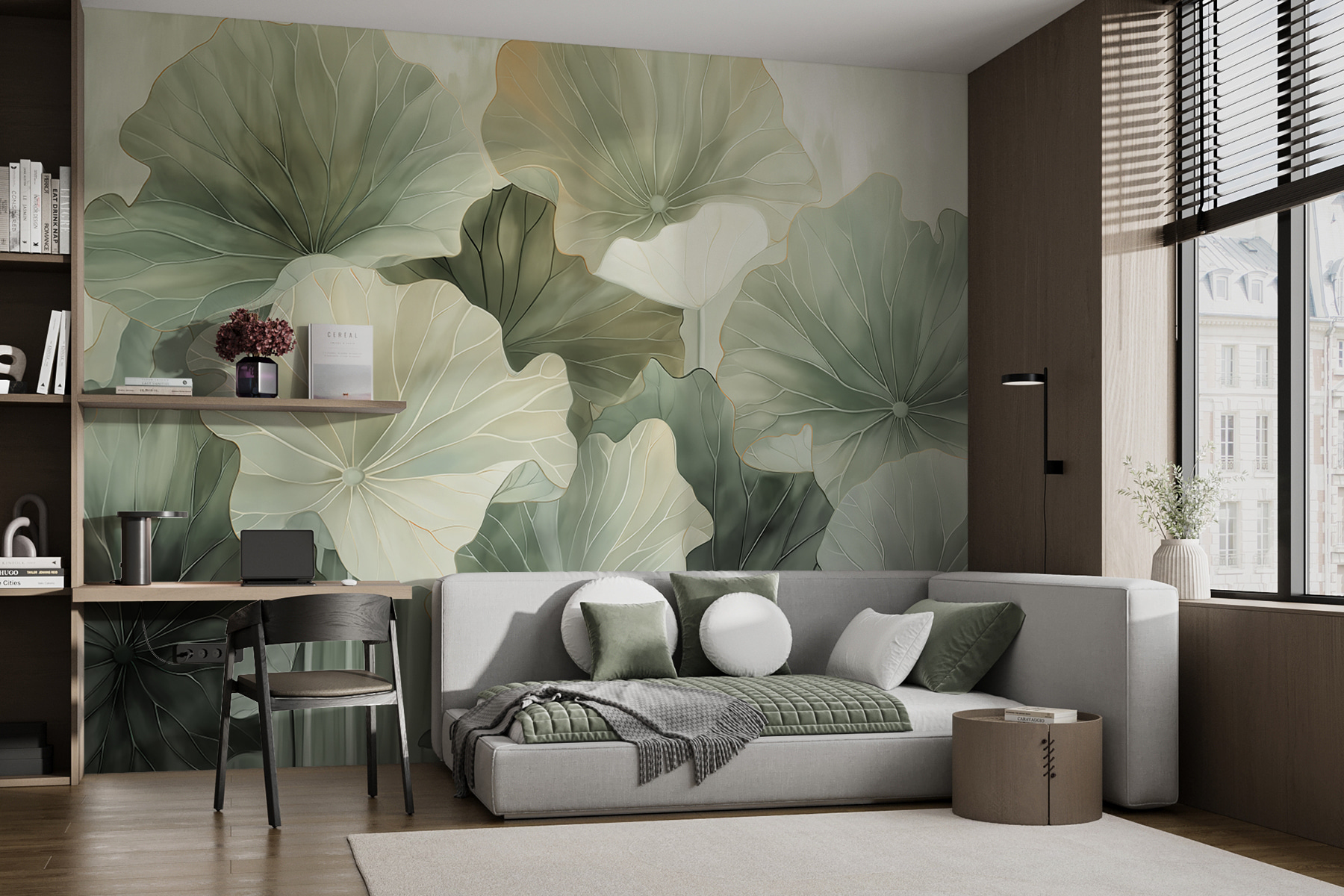 Vea exactamente cómo quedará su espacio con el nuevo papel pintado antes de comprarlo. Visualización profesional realizada por diseñadores expertos sin ningún coste ni obligación de compra.