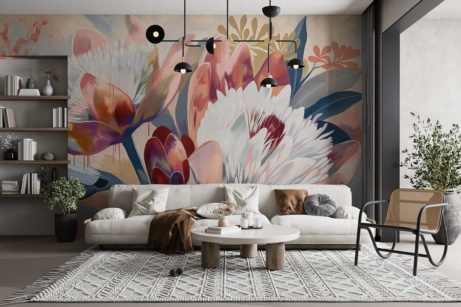 Las posibilidades son infinitas: atrévete a soñar. Con rosas cálidos, azules suaves y una pizca de tonos tierra, este mural es como un cálido abrazo en un día frío. ¿Estás pensando en cambiar de aires o simplemente quieres un poco más de belleza en tu vida? Este es tu lugar. Seamos realistas, ¿quién no quiere tener en casa su propia obra de arte inspirada en la naturaleza?