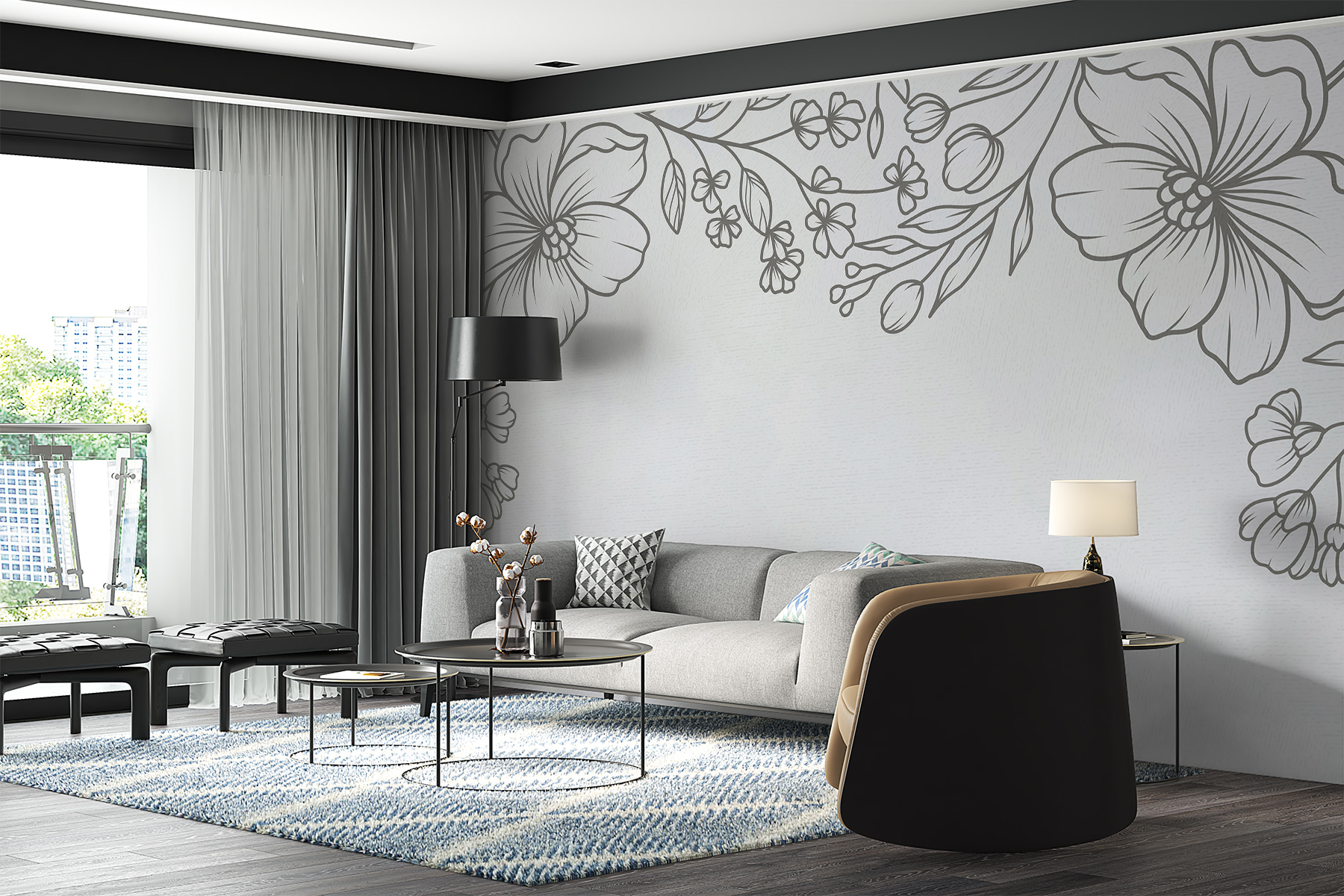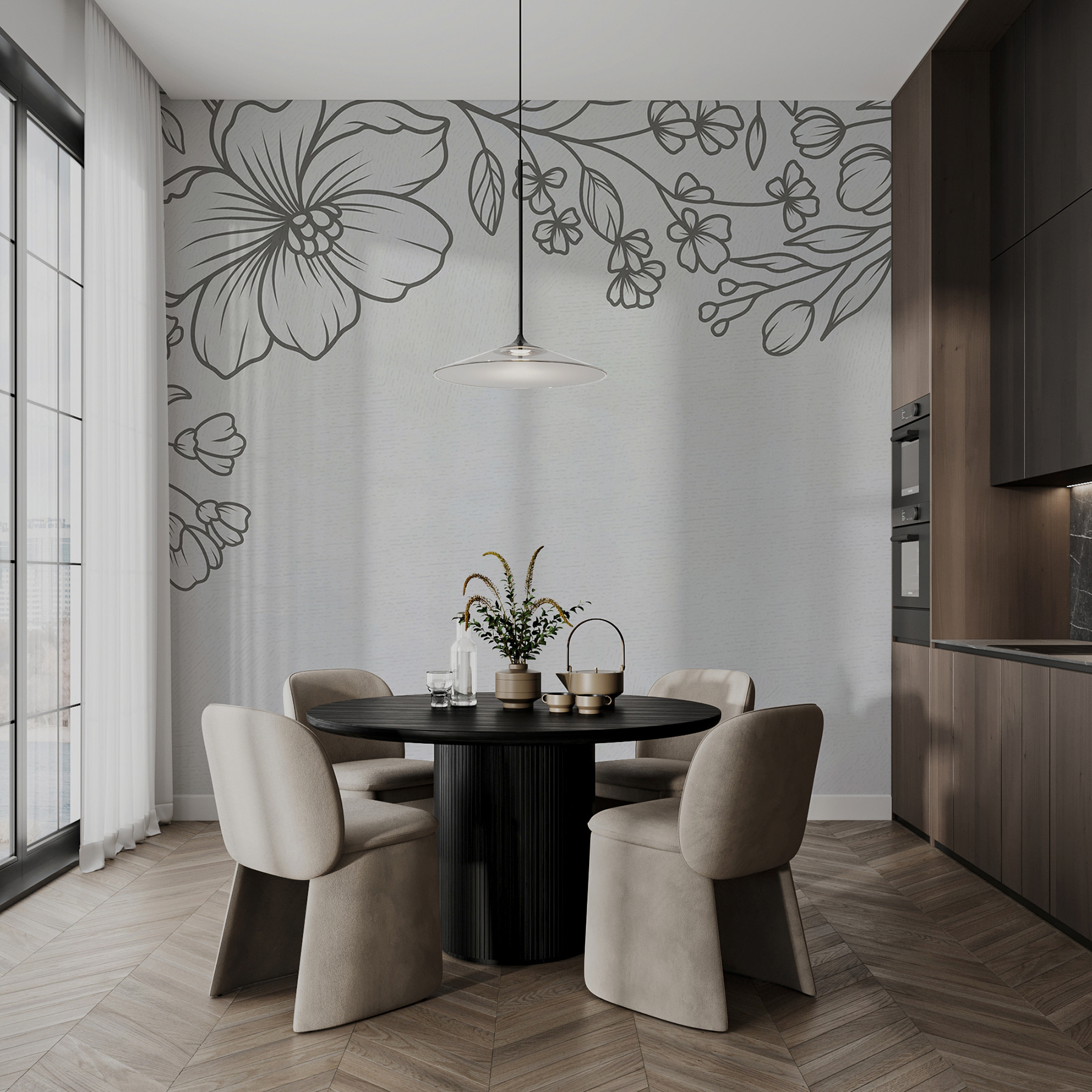 Cada pétalo y cada hoja está bellamente detallado, casi como un suave garabato que cobra vida. Los tonos neutros lo hacen flexible, combinando sin esfuerzo con varios colores y estilos. Es el tipo de fondo que invita a la relajación y la creatividad. Imagínatelo en un acogedor rincón de lectura o como foco de serenidad en tu salón: ¡seguro que despierta la alegría y los cumplidos de los invitados!