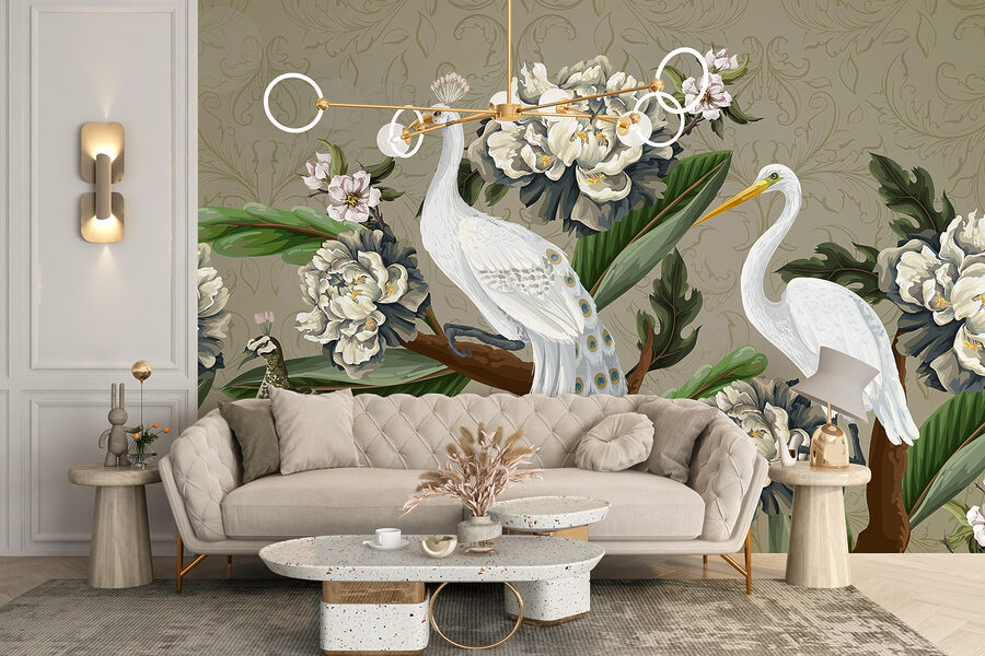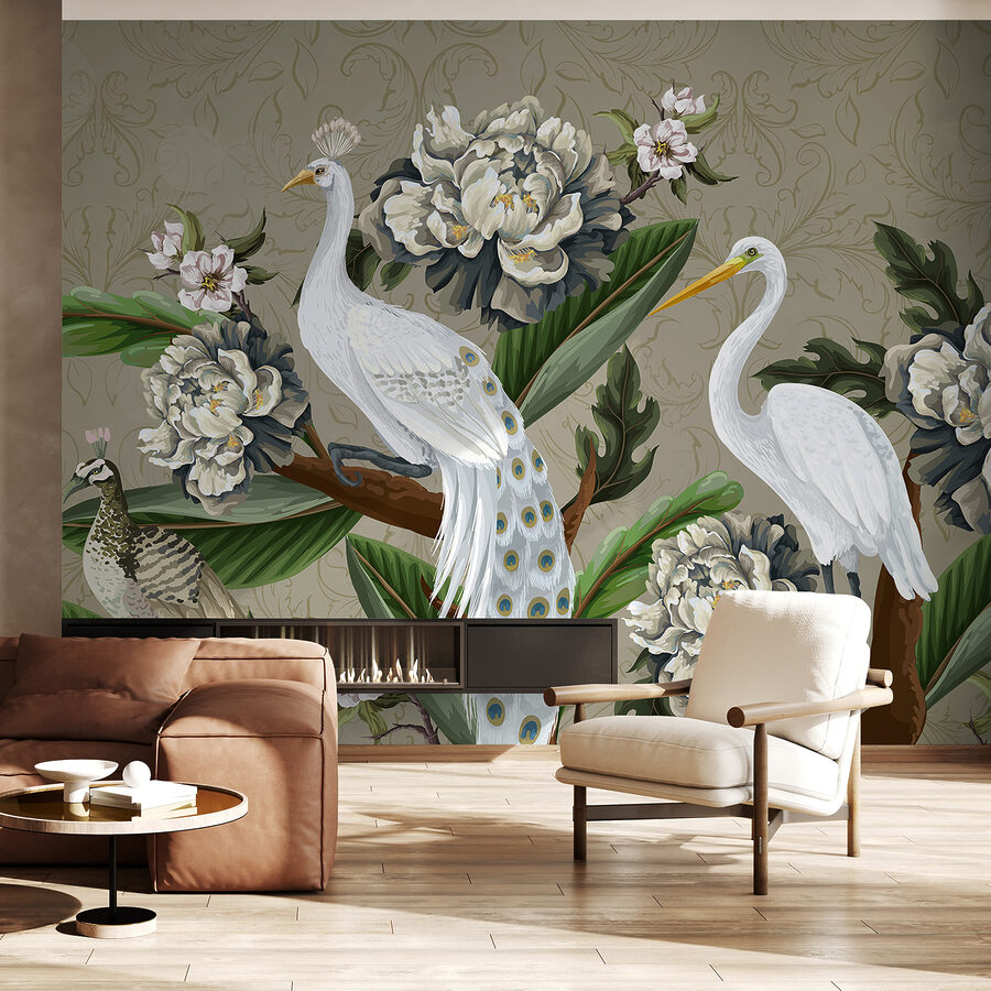 Imagínese el tipo de elegancia relajada que aporta este mural: sus paredes cuentan una historia de ensueño de un tranquilo paraíso botánico. Es ideal para alguien que ama la naturaleza pero también aprecia un toque de sofisticación. Los pavos reales y las flores son tan detallados que le parecerá estar paseando por un jardín exótico. Perfecto para crear ese factor sorpresa cuando te visiten tus amigos, ¡seguro que suscitará conversación!