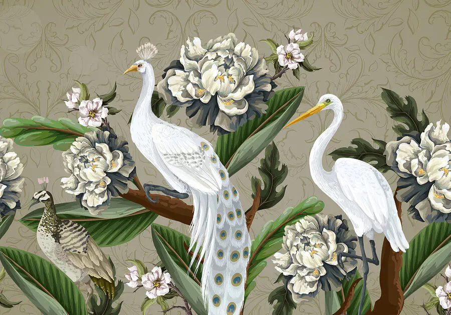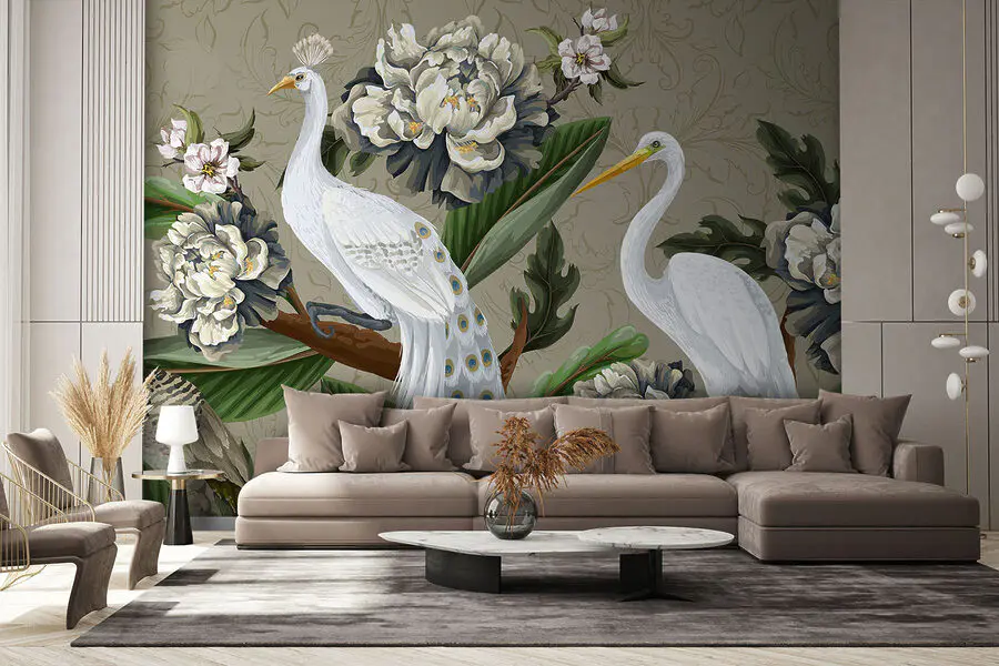 Imagínese el tipo de elegancia relajada que aporta este mural: sus paredes cuentan una historia de ensueño de un tranquilo paraíso botánico. Es ideal para alguien que ama la naturaleza pero también aprecia un toque de sofisticación. Los pavos reales y las flores son tan detallados que le parecerá estar paseando por un jardín exótico. Perfecto para crear ese factor sorpresa cuando te visiten tus amigos, ¡seguro que suscitará conversación!