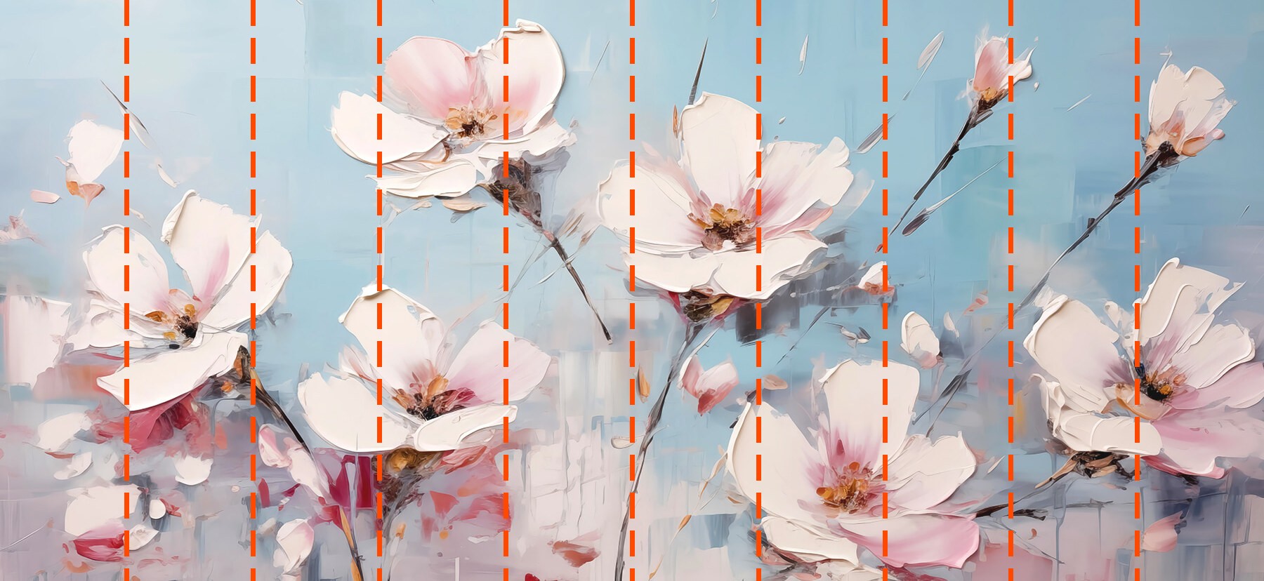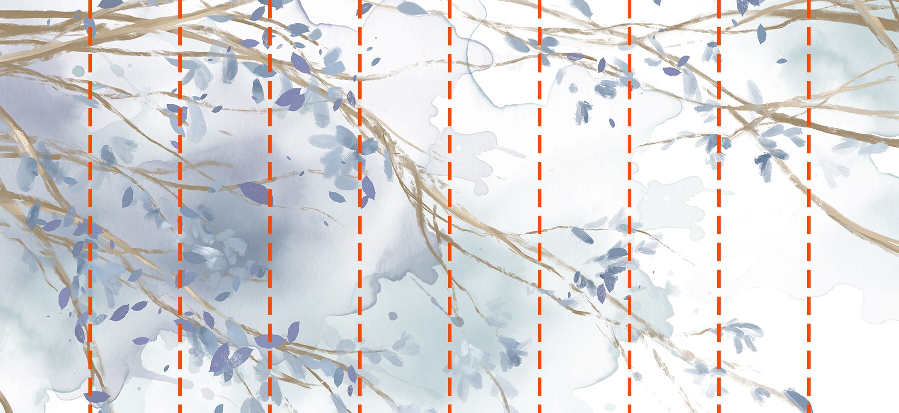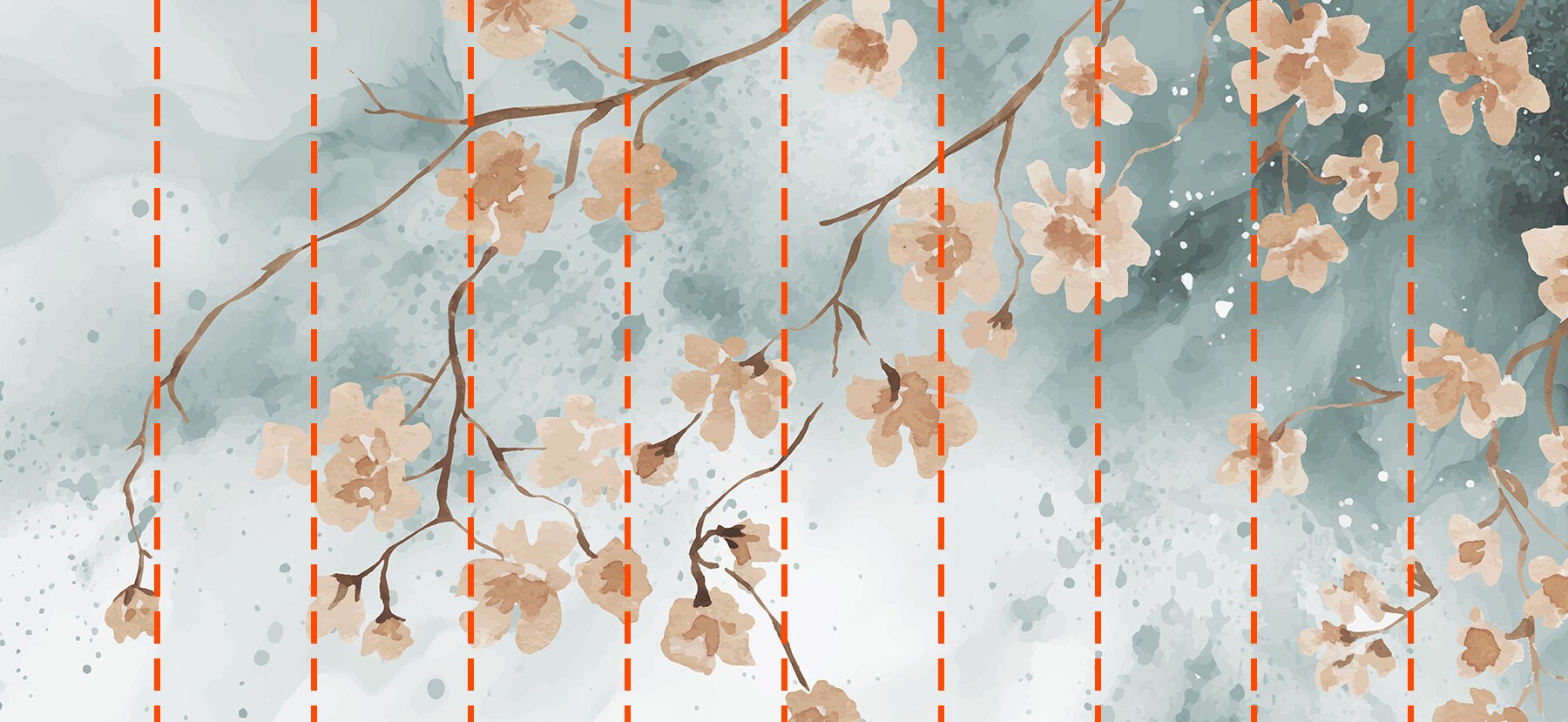 Tu papel pintado se preparará según las dimensiones que nos hayas facilitado durante el proceso de pedido. El lienzo se dividirá en cómodas secciones de hasta 50 cm de ancho cada una.