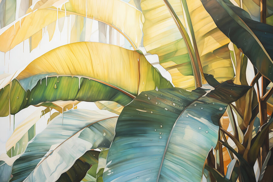 El detalle es increíble: parece que cada hoja se mece con la suave brisa. ¿Y cómo combinan los colores? De ensueño. Es como tener un trocito del trópico en casa, sin tener que viajar en avión. Tanto si estás pensando en animar el salón como en dar un toque atrevido al dormitorio o crear un ambiente tranquilo en tu espacio de trabajo, este mural te ayudará. Además, hay algo en esa textura con aspecto de madera que añade un encanto acogedor y rústico.