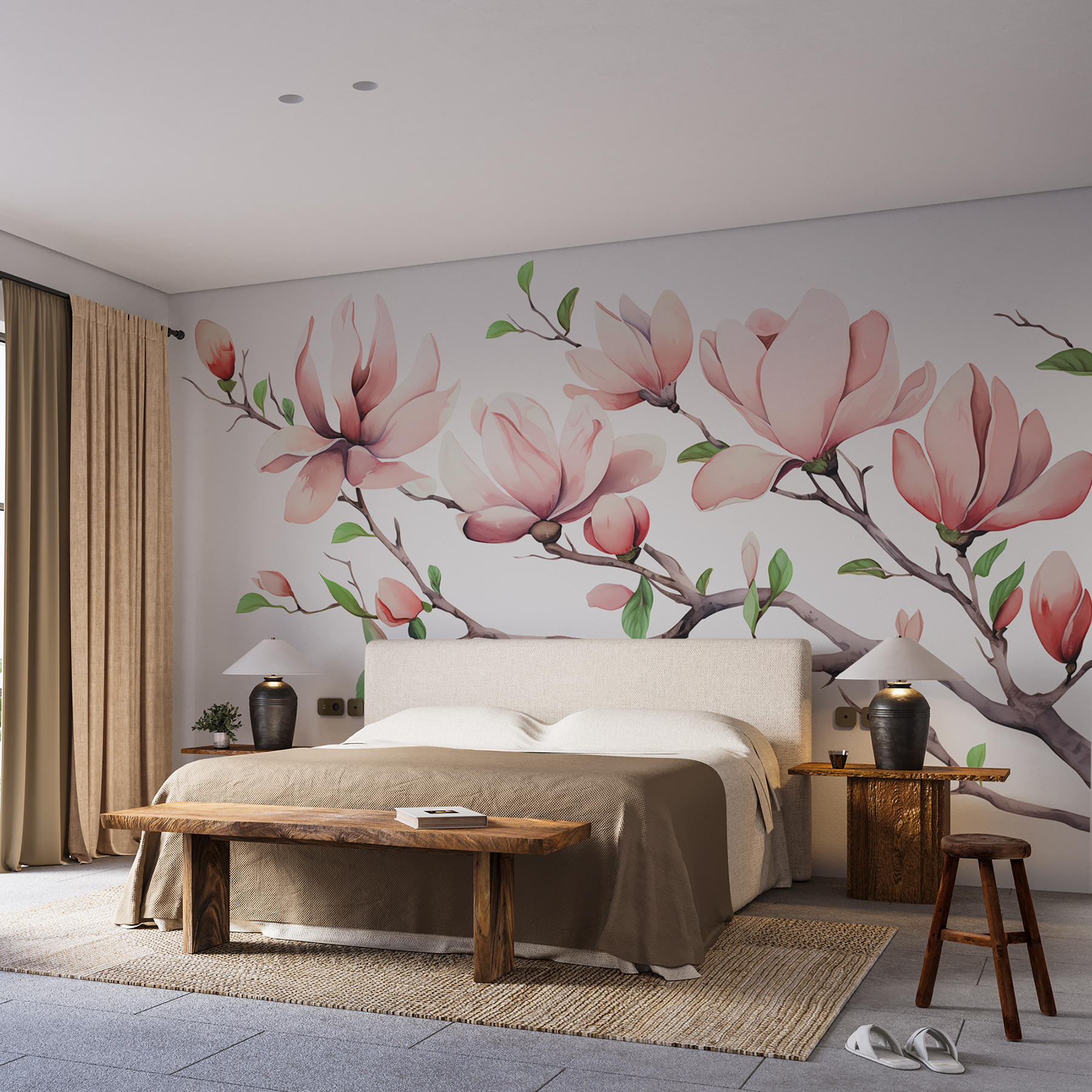 Transforme su espacio en un oasis floreciente con este impresionante mural de pared. Con delicadas ramas adornadas con suaves flores rosas y vivas hojas verdes, trae la frescura de la naturaleza a tu hogar. Imagina despertarte con esta suave belleza cada mañana, es como tener un jardín sin las molestas malas hierbas. Perfecta para cualquier habitación, crea un ambiente tranquilo que hace que incluso los lunes por la mañana sean un poco más dulces. Imagínate pasando las tardes en tu nuevo refugio floral, tomando té y soñando despierto, rodeado por completo del encanto de la naturaleza. Es un complemento tan sencillo, ¡pero puede iluminar cualquier pared con alegría!