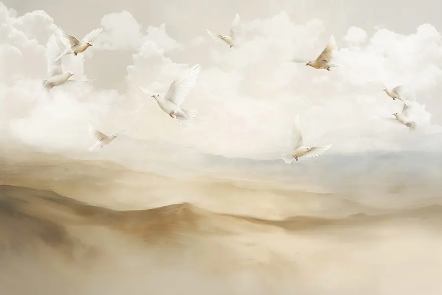 ¿Alguna vez has querido sentir que vives en un sueño? “Fotomurales w08143” puede ser la solución. Imagínatelo: serenas nubes flotando suavemente por la pared, con la suave luz del día asomándose; es como tener el cielo en tu habitación. Y esas palomas, parecen casi listas para salir volando y traer un poco de paz a tu espacio. Imagínate relajándote después de un largo día, cómodamente en el sofá, contemplando este precioso mural y sintiendo que te invade una sensación de calma. Es más que decoración, es una vía de escape… ¡en tu propia casa!