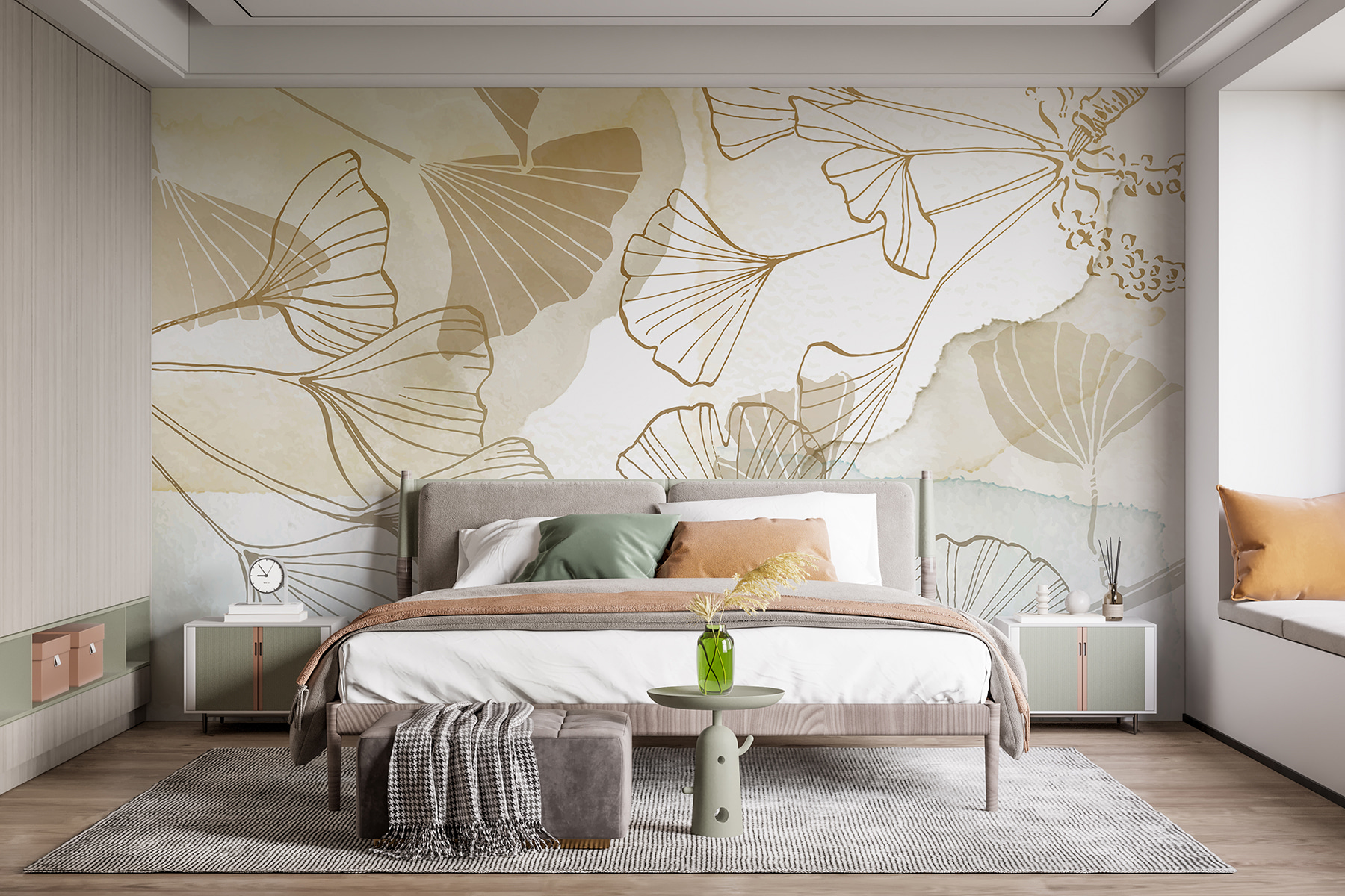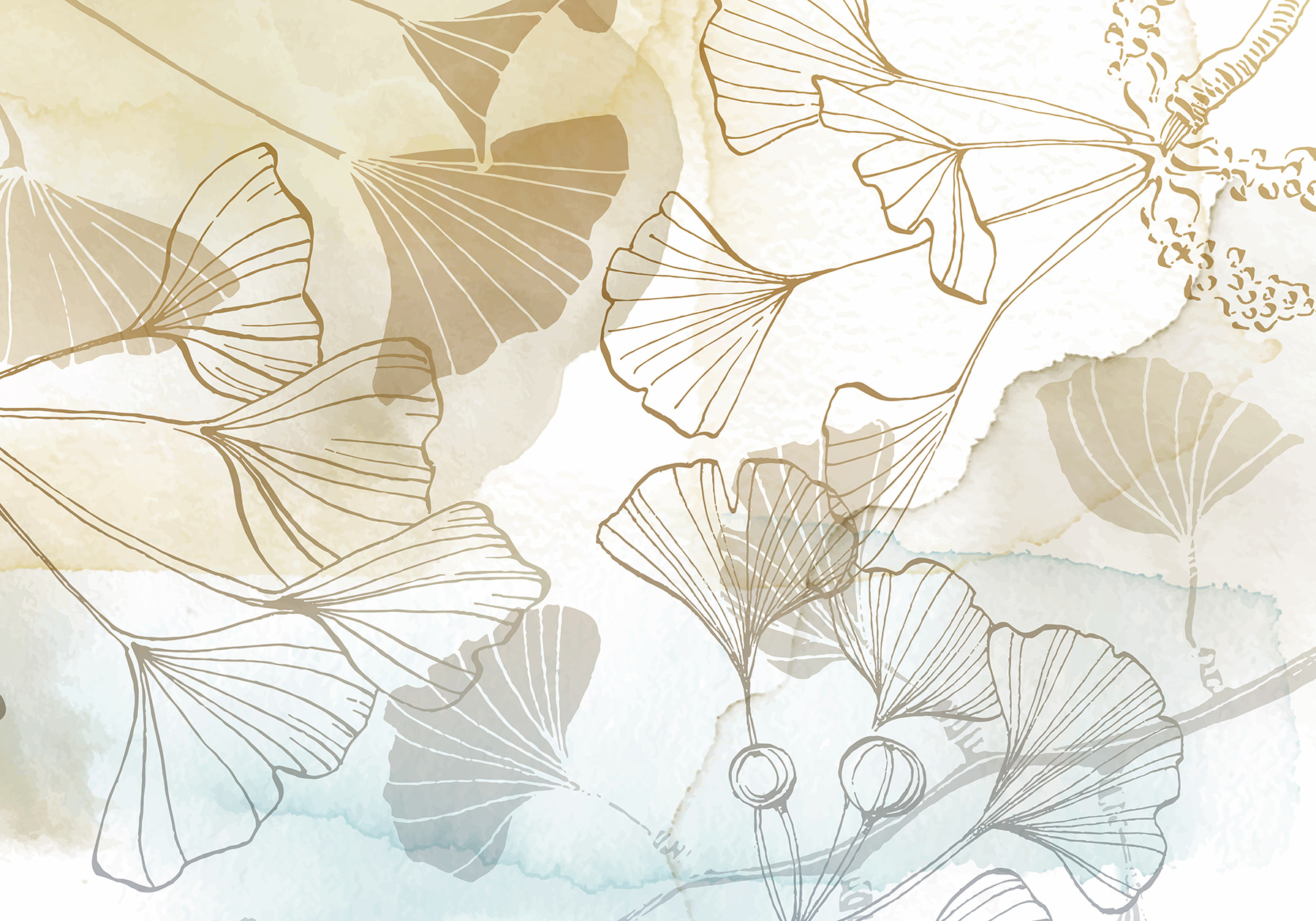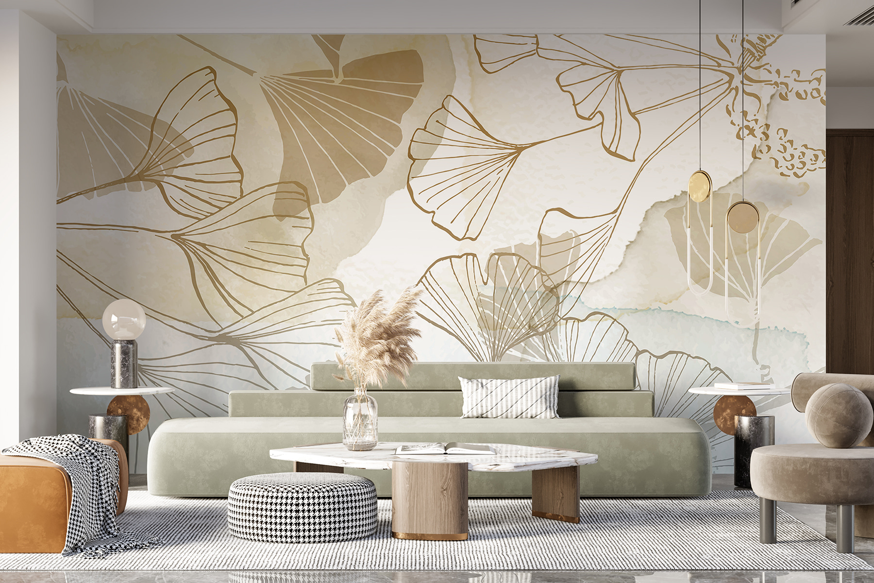 Fotomurales Agraciadas hojas de ginkgo en aguada de acuarela Fotomurales Agraciadas hojas de ginkgo en aguada de acuarela