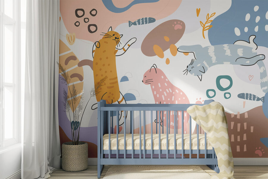 Transforme cualquier espacio con este alegre mural de pared con una animada troupe de gatos sobre un fondo colorido. Imagina una tarde tranquila en la que esas adorables bolas de pelo hacen sonreír a cualquiera que pase por allí. El juguetón diseño añade un toque de fantasía, perfecto para un rincón acogedor o incluso para un luminoso salón. Gatos descansando, estirándose y tal vez planeando su próximo tentempié, ¿quién no se reiría con eso? Con un delicioso equilibrio de colores, crea un ambiente cálido y acogedor. Es como tener un suave abrazo felino en la pared.
