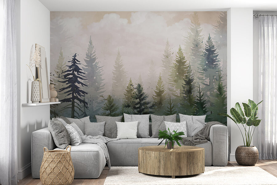 Hola a todos ¿Alguna vez has tenido ganas de escaparte a la naturaleza sin salir de tu salón? “Fotomurales w08160” es tu sueño hecho realidad. Es como entrar en una acuarela en la que los pinos se extienden hasta tocar el cielo. Imagínese tomando su café matutino, rodeado de esta serena escena – ¡es como un abrazo del bosque! La mezcla de verdes y azules suaves aporta un ambiente relajante, perfecto para un rincón tranquilo o incluso para una pared. Créeme, es como tener tu rebanada personal de tranquilidad. Este mural no es sólo decoración, ¡es toda una experiencia!