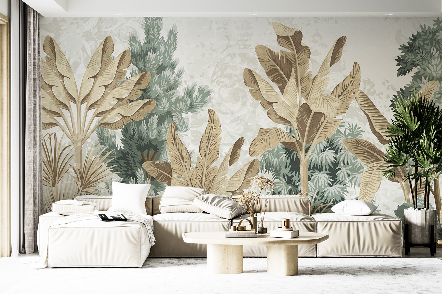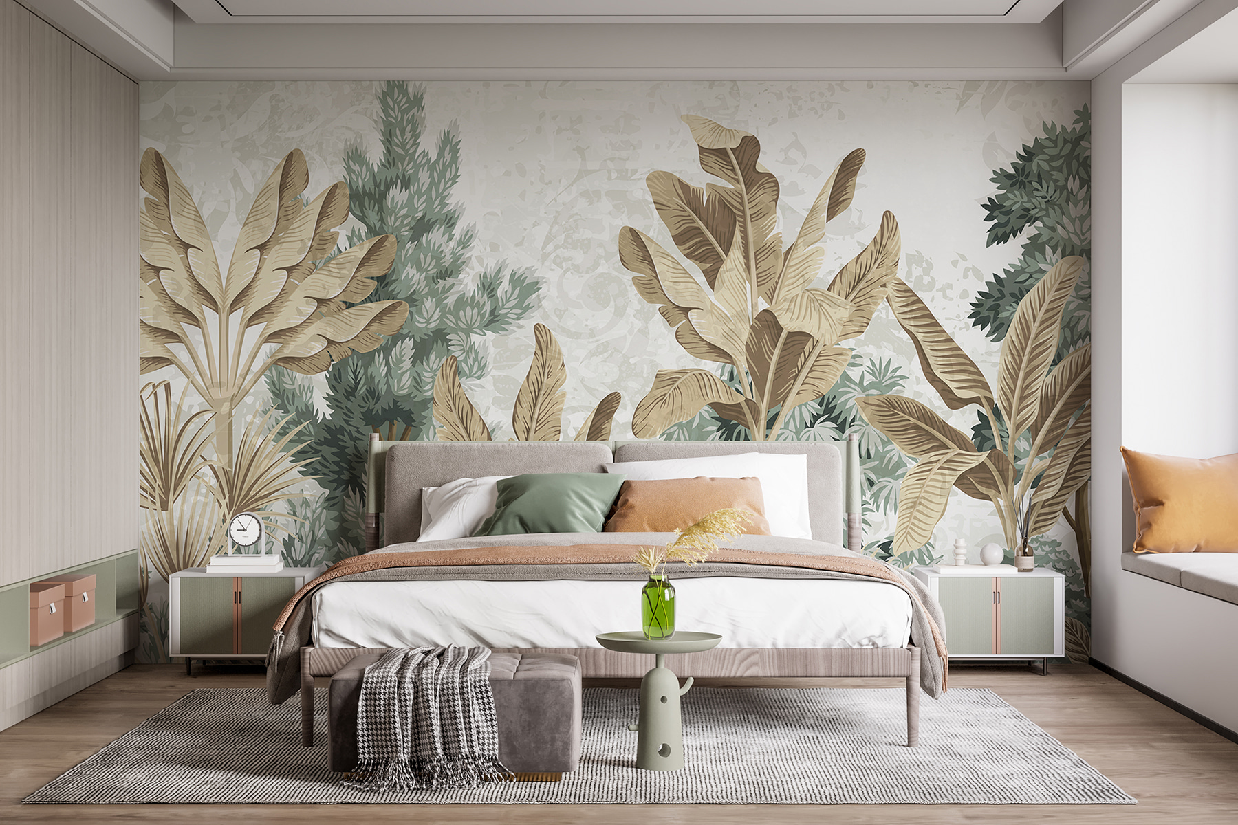 Piensa en transformar tu espacio con este “Mural de pared w08200”: ¡es como tener un trozo de selva en tu salón! Los atrevidos y frondosos verdes y los tonos tierra crean un increíble efecto 3D que te hará sentir como si estuvieras perdido en el paraíso tropical cada vez que entres (menos las picaduras de mosquito, por suerte). Perfecto para los amantes de la naturaleza en interiores sin necesidad de regar nada.