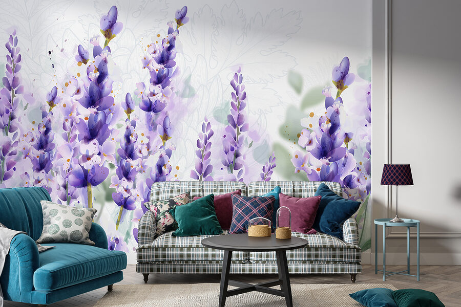 Con esos delicados pétalos y toques verdes, es como si las flores se mecieran con una suave brisa. Respira (vale, no literalmente), pero deja que estas flores te transporten a un tranquilo campo de lavanda. No es sólo un mural; ¡es un trozo de tranquilidad para tu pared!