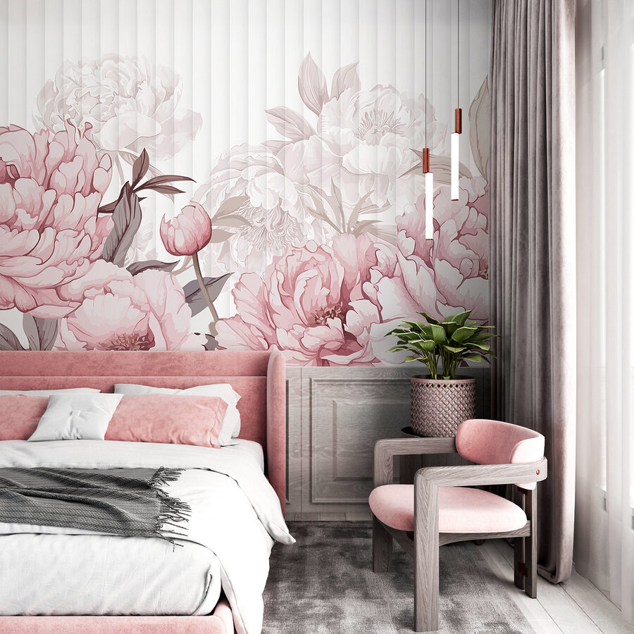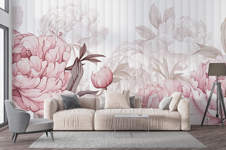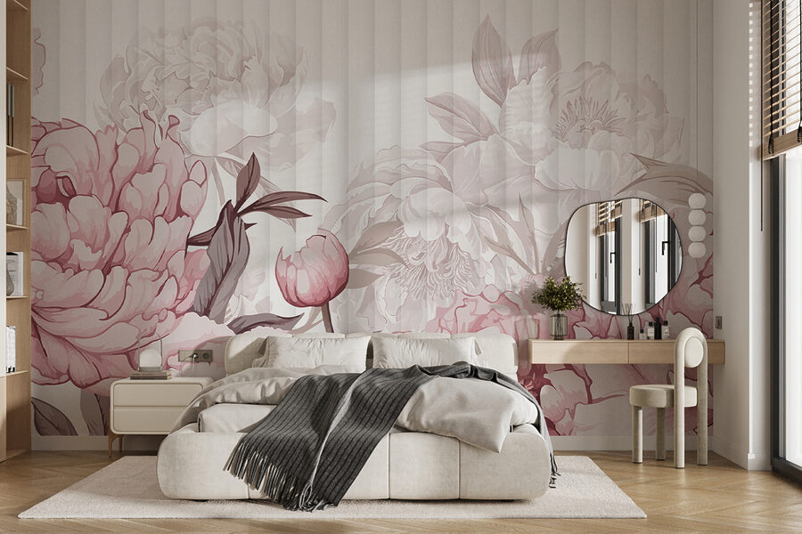 “Blush Blooms in Gentle Allure”, ¿no parece sacado de una novela romántica de ensueño? Este mural convertirá cualquier habitación en un acogedor paraíso floral. Imagina tomarte el café (o el té, sin juzgar) por la mañana rodeado de estas suaves peonías rosas, que parecen inclinarse para susurrarte un secreto. Perfecto para los amantes de las flores o para cualquiera que desee añadir un toque de naturaleza sin tener que regar. Es como tener un jardín, pero sin abejas ni ardillas. ¿Quién podría resistirse a un encanto tan suave?