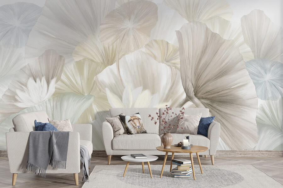 Imagínese que entra en una habitación donde las paredes susurran calma y naturaleza a la vez. Este mural, “Grupo de hojas blancas y grises”, aporta ese toque sereno, como una suave brisa matutina. Las texturas de acuarela y los tonos suaves se sienten como una manta acogedora para los ojos, invitando a un momento de evasión. Imagínate tomando el café de la mañana, perdido en sus relajantes motivos; es como una pausa meditativa antes de que empiece el día. Perfecto para añadir un toque extra de tranquilidad a cualquier espacio.