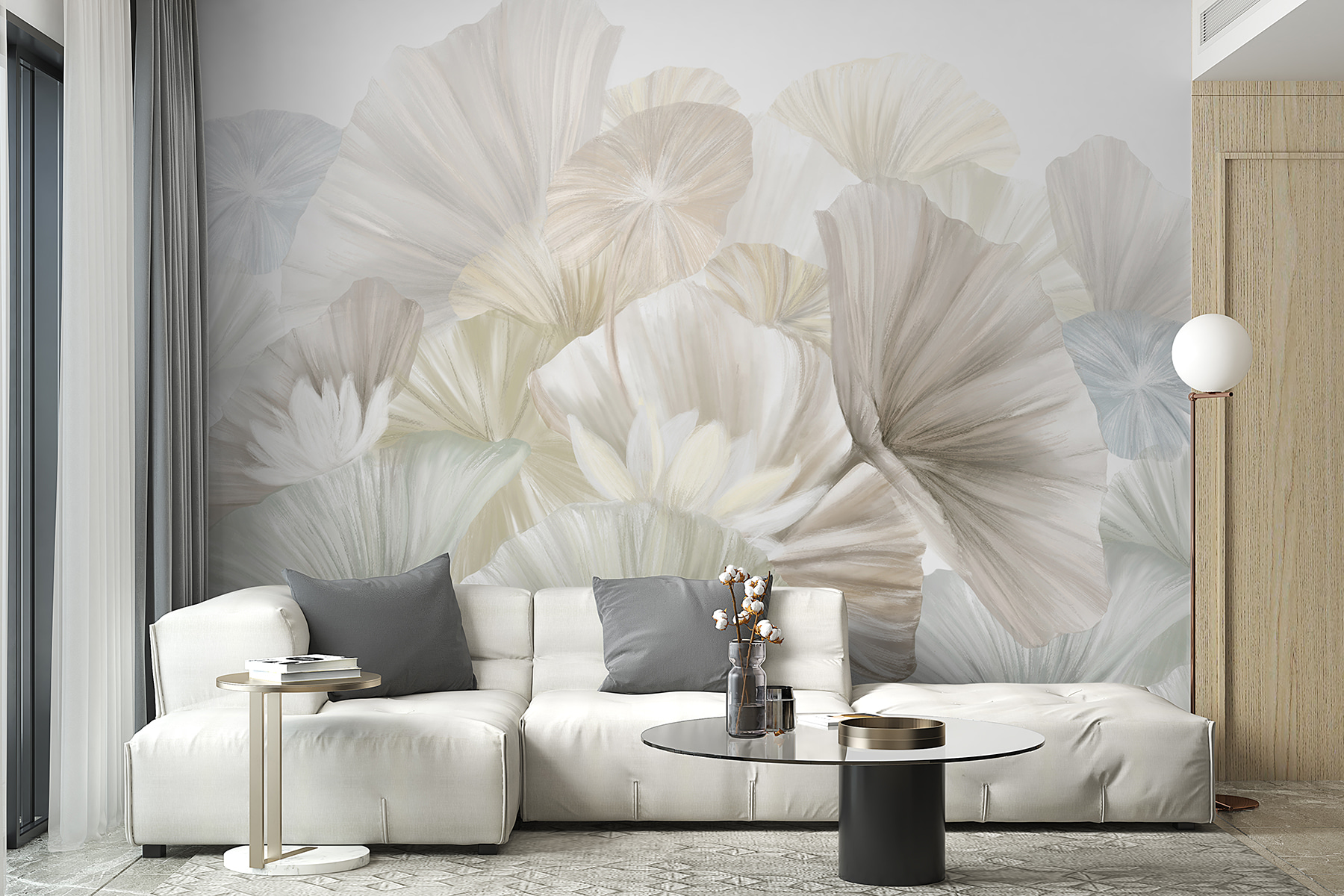 Imagínese que entra en una habitación donde las paredes susurran calma y naturaleza a la vez. Este mural, “Grupo de hojas blancas y grises”, aporta ese toque sereno, como una suave brisa matutina. Las texturas de acuarela y los tonos suaves se sienten como una manta acogedora para los ojos, invitando a un momento de evasión. Imagínate tomando el café de la mañana, perdido en sus relajantes motivos; es como una pausa meditativa antes de que empiece el día. Perfecto para añadir un toque extra de tranquilidad a cualquier espacio.