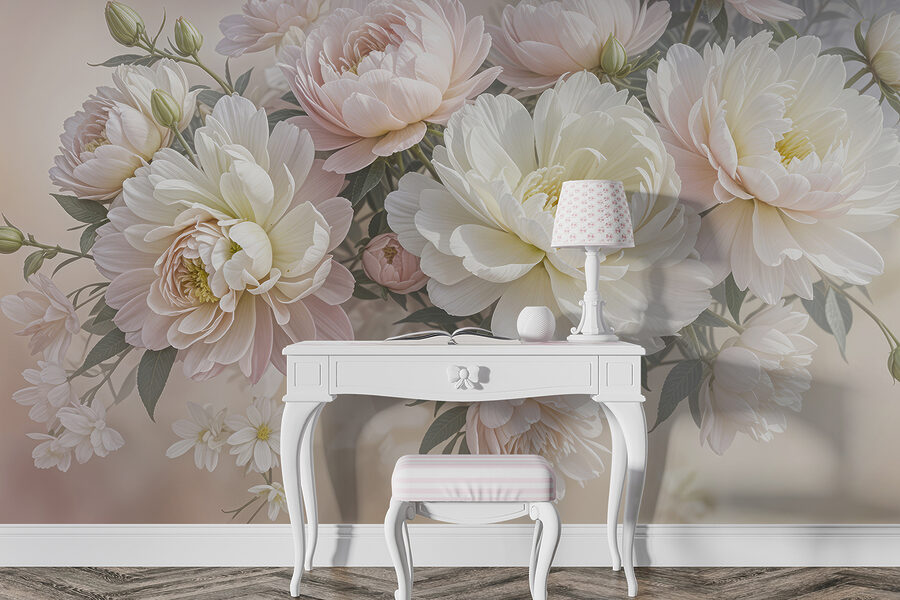 Imagínese entrar en una habitación y ser recibido por este mar de ensueño de flores blancas y rosas, ¡como si entrara en un jardín de cuento de hadas! Este mural susurra elegancia y alegría, ¿verdad? Perfecto para convertir cualquier espacio aburrido en un remanso de serenidad. Imagínate despertar con estas peonías gigantes envolviéndote en un suave abrazo floral. Es como si la naturaleza hubiera decidido acampar en tu pared. Perfecto tanto para soñadores como para amantes de las flores, es un acogedor abrazo artístico que te alegrará el día. Sólo tienes que añadir una silla cómoda, un buen libro y dejar que las flores hagan su magia.