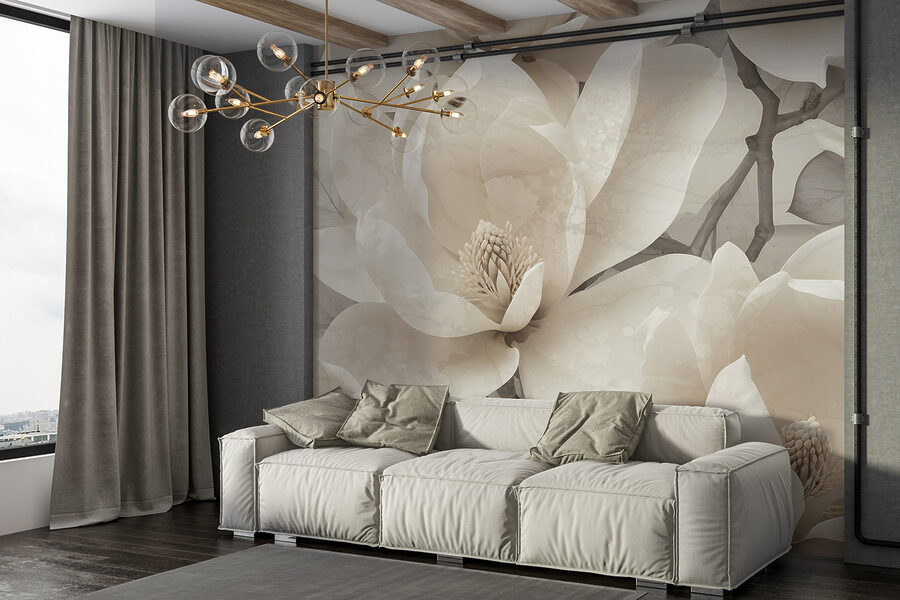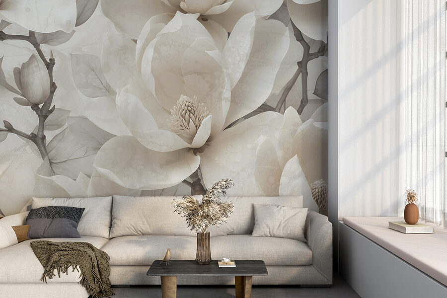 Imagine entrar en una habitación y sentir que se ha adentrado en un apacible jardín de magnolias, sin ni siquiera salir de casa. Este mural de elegantes magnolias en tonos suaves y apagados es como un susurro tranquilizador, que envuelve instantáneamente el espacio en serenidad. Es perfecto para cuando quieras leer tu libro favorito o tomar una taza de té caliente en una tarde tranquila. Las flores son tan reales que olvidarás que no son 3D. Ideal para cualquiera que ame la naturaleza pero no tenga un pulgar verde. Prométanos que no la regará.