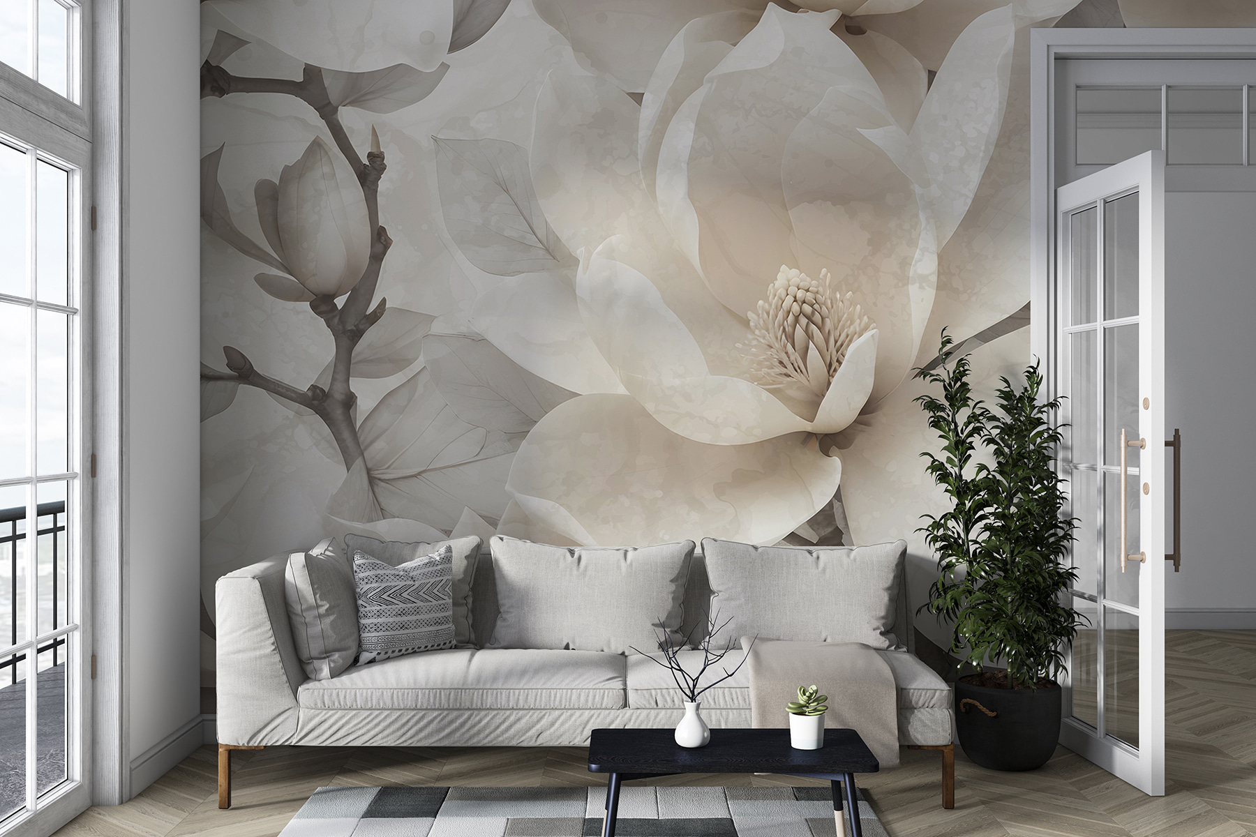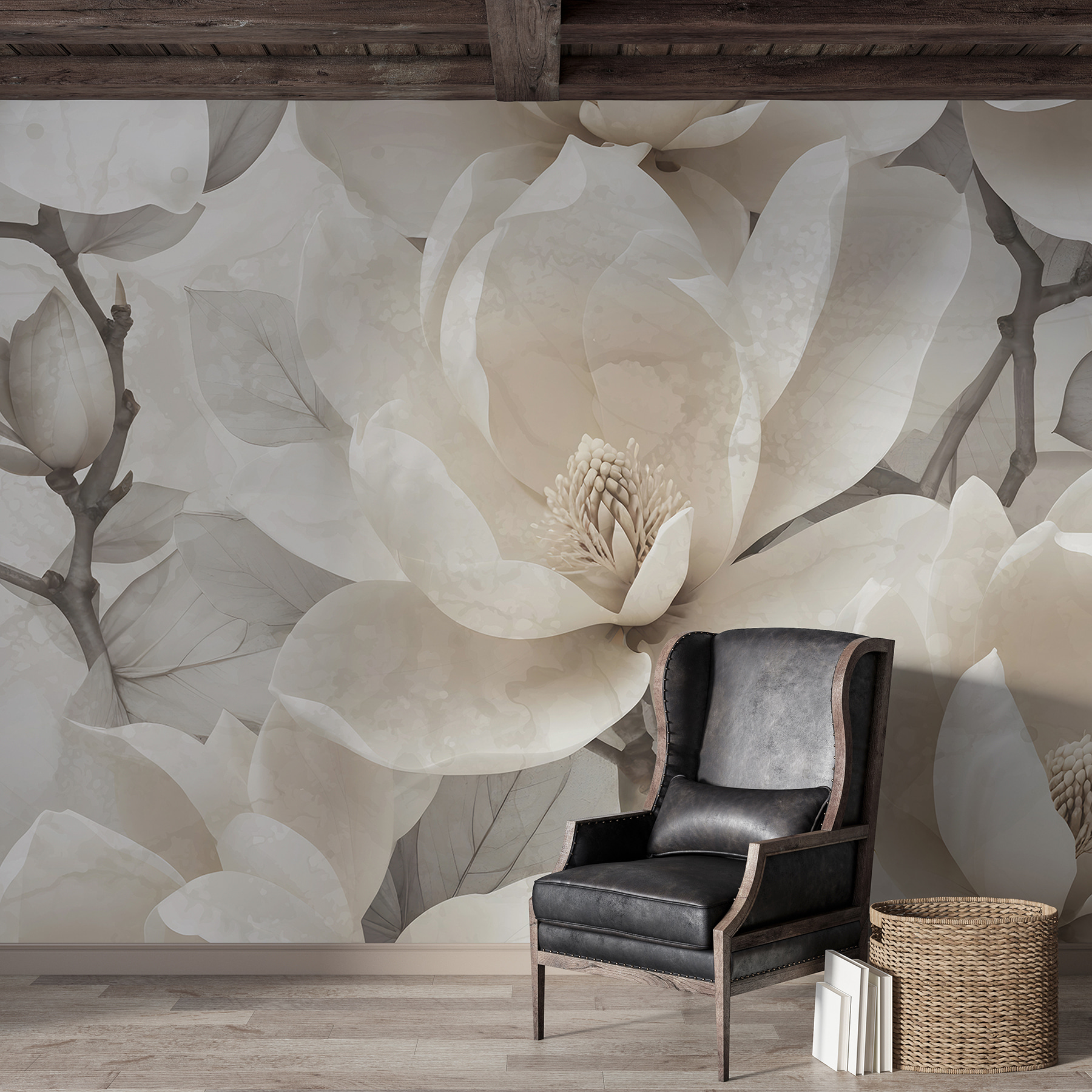 Imagine entrar en una habitación y sentir que se ha adentrado en un apacible jardín de magnolias, sin ni siquiera salir de casa. Este mural de elegantes magnolias en tonos suaves y apagados es como un susurro tranquilizador, que envuelve instantáneamente el espacio en serenidad. Es perfecto para cuando quieras leer tu libro favorito o tomar una taza de té caliente en una tarde tranquila. Las flores son tan reales que olvidarás que no son 3D. Ideal para cualquiera que ame la naturaleza pero no tenga un pulgar verde. Prométanos que no la regará.