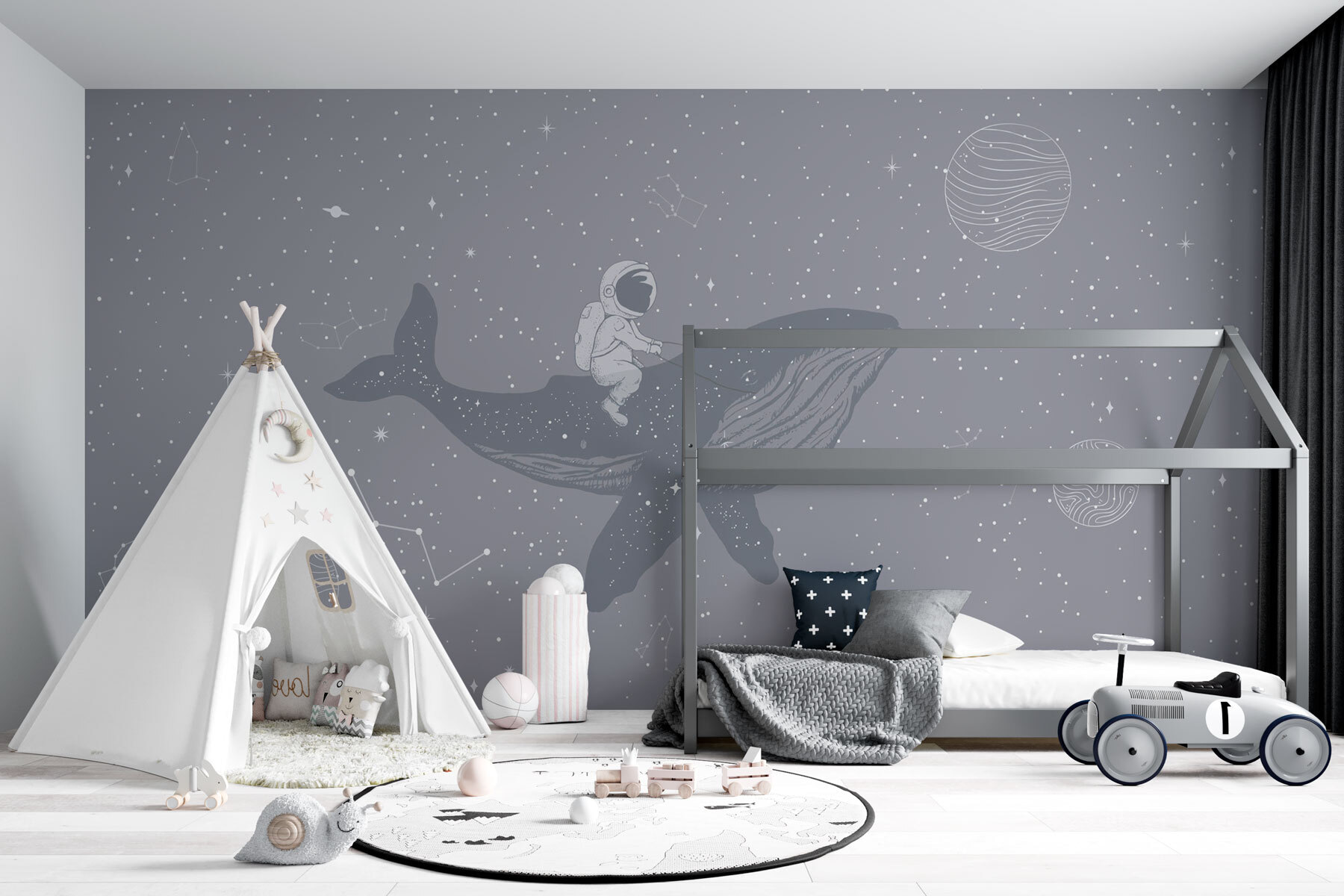 Imagina entrar en una habitación y encontrarte a un astronauta cabalgando despreocupadamente una ballena por el espacio. Un mural de pared sacado de un cuento. Es como si el universo hubiera decidido mezclar sus mejores animales y galaxias para dar un paseo por la fantasía. Perfecto para soñadores y observadores de estrellas, transformará cualquier pared en un paisaje marino interestelar. Siente la magia: flota junto a estrellas y planetas mientras te relajas en casa. ¿Quién necesita un televisor cuando tiene vibraciones cósmicas y una simpática ballena gigante que le da la bienvenida? ¿Listo para la aventura? ¡Sumérjase!