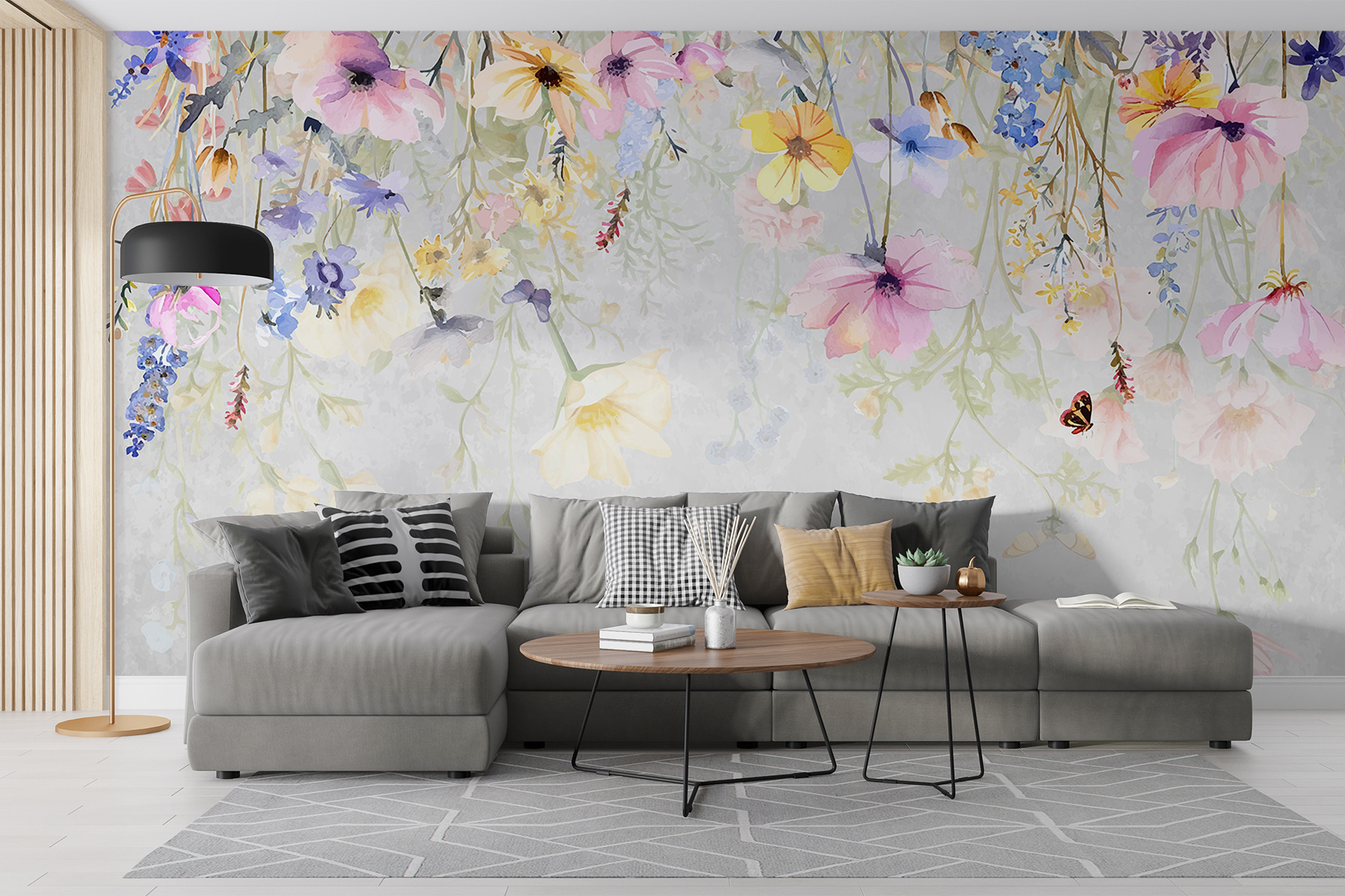 Imagine entrar en una habitación y encontrarse en un jardín de ensueño donde las flores susurran secretos y las mariposas coquetean juguetonas con la brisa. Este mural no sólo transforma una pared, sino que le transporta a un prado lleno de flores pastel y delicadas alas. Sienta cómo la calma se apodera de su espacio y lo llena de vida, perfecto para despertar la creatividad o simplemente para relajarse después de un día ajetreado. Es como invitar a una mañana de primavera a tu casa, sin necesidad de regar nada. Tu oasis personal, ¡sin insectos!