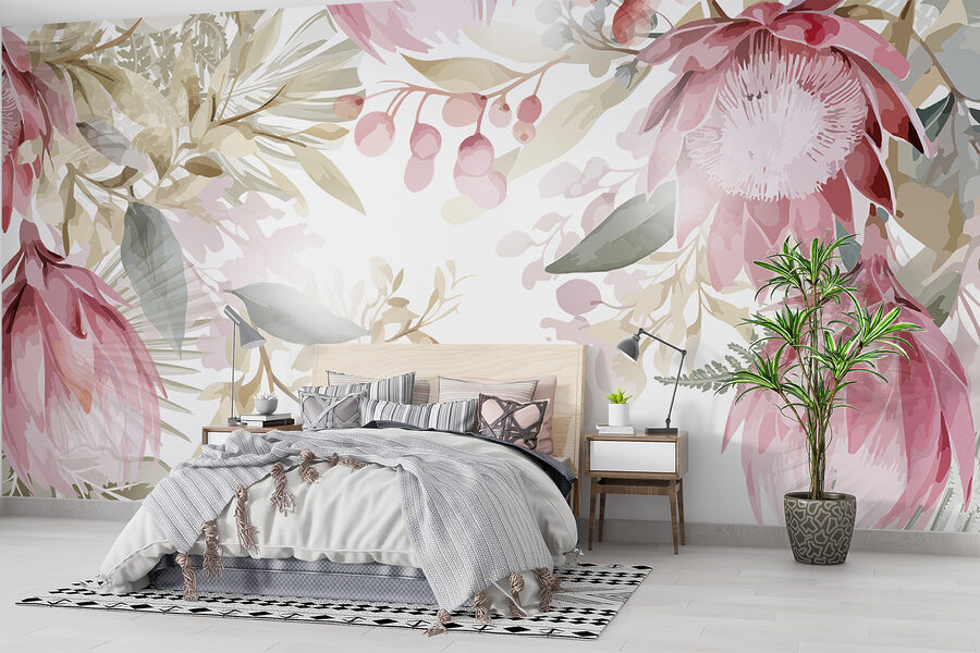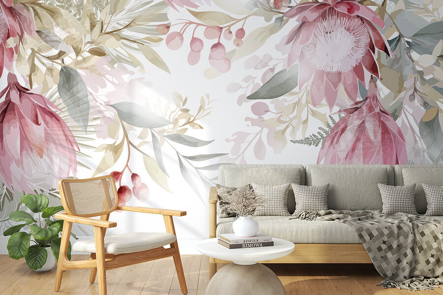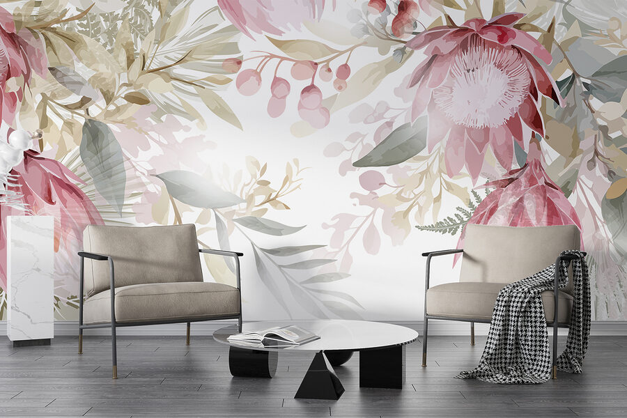 Fotomurales Pintura de flores y hojas